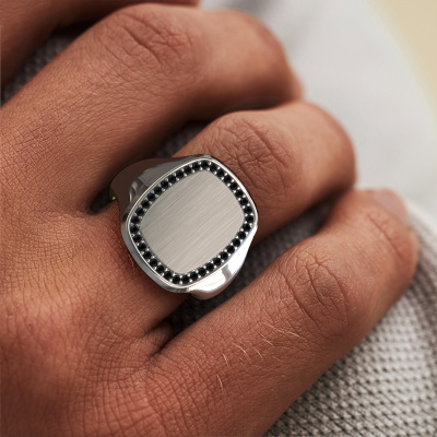 Met deze vlakke Floris Cushion 4 heren ring presenteer je jezelf, want de juiste ring is een krachtig persoonlijk statement. Hier is de Floris Cushion 4 elegant heren ring afgebeeld in 14 Carat witgoud. Is dit niet geheel jouw kleur, dan kun je dit aanpassen naar het edelmetaal van je keuze. Tenslotte wil je een heren ring in jouw stijl. Een ring die bij jou hoort. En waarmee je zegt: dit ben ik. Wat denk je van deze moderne witgouden zegelring? Deze Floris Cushion 4 zegelring stel je helemaal zelf samen met onze configurator. Vervolgens wordt jouw persoonlijke elegante Floris Cushion 4 zegelring met de hand gemaakt door onze goudsmeden. De keuze van het edelmetaal en de edelstenen kun je helemaal naar eigen wens invullen. Heb je bepaalde ideeën voor jouw zegelring, maar kun je deze niet bij onze opties vinden? Laat het ons dan gerust weten. Wij maken jouw persoonlijke moderne zegelring geheel naar jouw wensen.