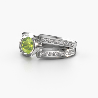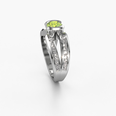 De bovenstaande zware Rowan heren ring met ronde peridoot bovenkant staat bol van traditie. De heren ring werd van oudsher van vader op zoon doorgegeven. Met deze zware witgouden heren ring start je je eigen traditie. Ook plaatsen we graag een gravure voor je, zoals een monogram of een familiewapen gravure. Kijk voor meer informatie en de mogelijkheden hiervan bij onze kennisbank. De verschillende afdelingen binnen de kennisbank vind je onderaan deze pagina. Jouw traditie begint hier, met de eigentijdse witgouden Rowan heren ring. Onze goudsmeden vervaardigen met veel passie en zorgvuldigheid jouw heren ring op maat en naar eigen wens. De witgouden heren ring zoals hier is afgebeeld, kan naar jouw wens worden aangepast met de configurator. Heb je bepaalde ideeën die je met de configurator niet kunt toepassen, dan kun je dit altijd even opnemen met onze sieradenontwerpers. Met vragen kun je uiteraard ook altijd terecht.Onze talentvolle ontwerpers voegen elke dag nieuwe designs toe aan de website, en werken samen om tot een zo gevarieerd mogelijke collectie te komen met de mooiste sieraden. Wil je een ring laten maken naar eigen ontwerp, neem dan eens contact met ons op voor een offerte. Graag doen wij je een aanbod, waarvan wij denken dat je wat betreft kwaliteit en prijs versteld zult staan.Door onze modernste technieken kunnen wij met uiterste precisie prachtige sieraden te ontwerpen en voor jou personaliseren in de hoogste juwelierskwaliteit. Tegelijkertijd zijn onze ringen altijd 30% goedkoper dan bij een andere juwelier. Dit komt doordat alle ringen pas vervaardigd worden op het moment dat deze besteld wordt en we daardoor geen dure voorraden hoeven te hanteren. Mocht je aan een bepaald budget gebonden zijn, kunnen we je graag adviseren welke combinatie je het beste kunt kiezen.Om het voor jou makkelijker te maken kun je ieder besteld sieraad binnen 30 dagen na aflevering eenvoudig weer retour sturen.