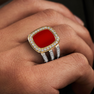 De bovenstaande brede Tijn zegelring met rechthoek antiek carneool bovenkant staat bol van traditie. De zegelring werd van oudsher van vader op zoon doorgegeven. Met deze brede witgouden zegelring start je je eigen traditie. Ook plaatsen we graag een gravure voor je, zoals een monogram of een familiewapen gravure. Kijk voor meer informatie en de mogelijkheden hiervan bij onze kennisbank. De verschillende afdelingen binnen de kennisbank vind je onderaan deze pagina. Jouw traditie begint hier, met de exclusieve witgouden Tijn zegelring. De bijzondere Tijn zegelring zoals je hier afgebeeld ziet, kan helemaal naar jouw wensen verpersoonlijkt worden. De mogelijkheden met onze configurator zijn zeer uitgebreid, maar mocht je toch iets aan jouw persoonlijke Tijn zegelring willen aanpassen wat niet als optie geboden wordt, dan kun je altijd contact met ons opnemen.Iedere dag worden nieuwe sieraad ontwerpen toegevoegd aan de website. Ons team van gepassioneerde designers streeft ernaar om tot de mooiste ontwerpen te komen, en een zo gevarieerd mogelijk aanbod. Heb je ergens een ring gezien welke je wilt laten maken, stuur ons dan bericht. Wij sturen je graag een offerte toe. Hierin bieden wij de beste prijs en kwaliteit. Je zult dit zeker niet kunnen afslaan!Onze goudsmeden vervaardigen pas je ring, zodra je deze besteld hebt. We hebben geen voorraden. Het voordeel hiervan is dat we de voorraad niet door hoeven te berekenen in de prijs, en wij daardoor sieraden kunnen leveren tegen een bijzonder lage prijs.Om het voor jou makkelijker te maken kun je ieder besteld sieraad binnen 30 dagen na aflevering eenvoudig weer retour sturen.