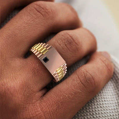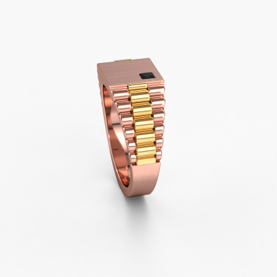 Iedereen kent het design van dit bekende horlogemerk. Met zijn schakels in twee kleuren rosé goud, past deze massieve 14 Carat rosé gouden Pelle heren ring bij de luxe, succesvolle man. Een man die een statement wil maken met een opvallende heren ring met 0.204 crt zwarte diamant. Laat zien wie je bent!Wat is er nu mooier, een luxe heren ring ontworpen door jou zelf, met de hand gemaakt door ons. Je kunt zelf ieder model aanpassen met de verschillende edelmetalen en edelstenen. Zo creëer je een unieke heren ring. Deze heren ring kun je op vele manieren zelf samenstellen. Uiteraard kun je altijd contact met ons opnemen. Wij helpen je graag bij het samenstellen van jouw luxe heren ring. Vind je het ontwerp mooi maar je zou toch graag iets aan willen passen, of een edelsteen in het sieraad willen hebben die niet in deze lijst staat, neem dan contact met ons op en wij vertellen je graag over alle mogelijkheden.Elke dag worden nieuwe ring ontwerpen toegevoegd aan de site door ons team van talentvolle en gepassioneerde ontwerpers. Hierbij wordt ernaar gestreefd om een zo gevarieerd mogelijke collectie aan te bieden. Heb je bepaalde ideeën voor een ring, neem dan eens contact op voor een offerte. Wij doen je een aanbod wat betreft prijs en kwaliteit waar je geen nee tegen zult kunnen zeggen.Onze goudsmeden vervaardigen pas je ring, zodra je deze besteld hebt. We hebben geen voorraden. Het voordeel hiervan is dat we de voorraad niet door hoeven te berekenen in de prijs, en wij daardoor sieraden kunnen leveren tegen een bijzonder lage prijs.Om het voor jou makkelijker te maken kun je ieder besteld sieraad binnen 30 dagen na aflevering eenvoudig weer retour sturen.