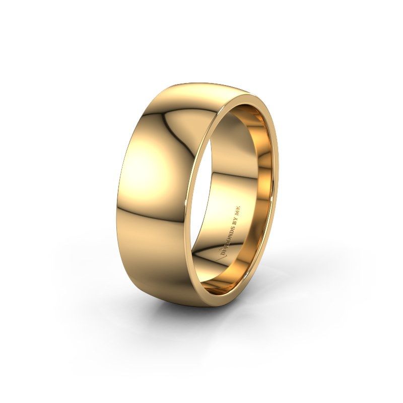 In ons atelier maken we gebruik van de meest innovatieve technieken, gecombineerd met het pure ambacht van goudsmeden, om jouw heren trouwring met vlak-bol profiel te vervaardigen. Dit resulteert in deze moderne WH0100M28BP trouwring, die tot in de kleinste details perfect wordt afgewerkt met de hand door onze goudsmeden. En daar zijn we trots op! Deze gouden WH0100M28BP trouwring voor heren is ±8 mm breed en is glimmende afgewerkt. In ons gespecialiseerde team verwerkt de sieradenontwerper jouw trouwring tot een 3D ontwerp. Wanneer je wilt, kun je hier ook een dummy van bestellen, zodat je de trouwring al van tevoren kunt zien en passen. Onze goudsmid werkt vervolgens in ons atelier met de hand om heel nauwkeurig jouw unieke ring te vervaardigen. Een heel secuur werkje, zowel het vervaardigen als de afwerking vragen een scherp oog. En dat is het mooie van het vak, want uiteindelijk is jouw unieke trouwring het resultaat van een echt ambacht, dat met veel passie uitgevoerd wordt!Heb je nog meer wensen voor je trouwring? Bijvoorbeeld een smallere of breder ring? Of juist een glimmende of matte ring? Er zijn nog talloze variaties mogelijk. Deze kun je altijd bespreken met onze sieradenontwerpers. Ook als je zelf een bepaald design in je hoofd hebt, helpen onze designers je graag verder om jouw trouwringen uit te tekenen totdat deze helemaal naar jouw smaak is samengesteld. Neem gerust contact met ons op!Alle trouwringen worden in ons eigen atelier gemaakt, zodra een bestelling binnenkomt. Hierdoor hoeven wij geen dure voorraden te hebben en kunnen wij je trouwringen leveren tegen een prijs die je bij geen andere juwelier tegen zult komen.Om het voor jou makkelijker te maken kun je ieder besteld sieraad binnen 30 dagen na aflevering eenvoudig weer retour sturen.