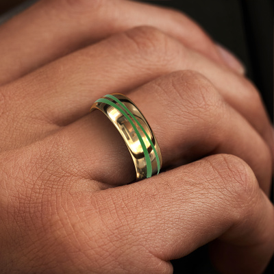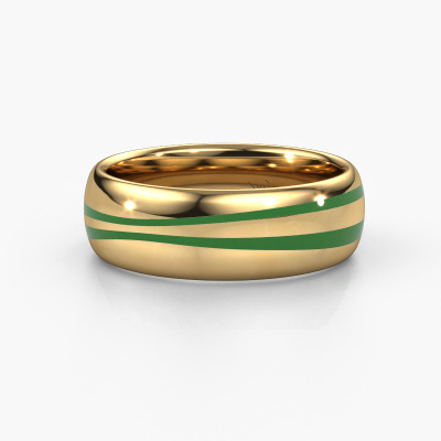De kunst van het emailleren zie je steeds meer terug in juwelen. Zo kun je bijvoorbeeld ook gouden huwelijksringen met emaille laten vervaardigen. Op die manier creëer je prachtige, kleurrijke huwelijksringen, helemaal naar jouw stijl. Emailleren is het samensmelten van gekleurde poeders van glas en kleurstoffen op verschillende materialen. Onze goudsmid gebruikt ook emaille om je design huwelijksring extra kleur te geven. Hierdoor kunnen kleine kunstwerkjes worden gecreëerd, juist door het bijzondere kleurenpalet dat gebruikt kan worden. Het emailleren vraagt een vaardige hand van een ambachtelijke goudsmid, en onze goudsmeden besteden daarom veel zorg en aandacht aan het vervaardigen van jouw emaillering. Heren ringen kunnen ook op deze manier met emaille worden afgewerkt. Deze design WH2226M36BP heren huwelijksring is ±7 mm breed. Nadat jij jouw ring hebt samengesteld, gaat onze sieradenontwerper hiermee aan de slag. Hij maakt een 3D tekening van jouw huwelijksring. Deze kunnen we ook gebruiken om een dummy te maken van je ring. Je hebt namelijk de mogelijkheid een dummy te bestellen, zodat je al van tevoren kunt zien hoe jouw ring uiteindelijk wordt. Vervolgens vervaardigt onze vakkundige goudsmid jouw ring in ons atelier. Wij maken gebruik van eerlijk gewonnen goud, zodat jij een ring krijgt waar we zowel op de binnenkant als buitenkant trots op zijn. Overigens kun je ook eigen goud aanleveren. Omdat wij jouw ring met de hand maken, kunnen we je eigen goud hierin gebruiken. Ons doel is om een prachtige glanzende huwelijksring te creëren, zoals jij deze in gedachte had!Heb je nog specifieke wensen? Bijvoorbeeld een glimmende of juiste matte ring (kostenloos)? Breder of smaller? De mogelijkheden voor deze huwelijksring groot, neem gerust contact met onze designers op om jouw ring nog verder naar jouw voorkeuren aan te passen. Ook als je ideeën hebt voor een ontwerp van je eigen huwelijksringen of een bepaalde ring in de winkel hebt gezien, kun je deze altijd bespreken met onze sieradenontwerpers. Zij vinden het een mooie uitdaging om precies die ring te ontwerpen die jij in gedachten hebt!Omdat wij zelf alle huwelijksringen maken en direct aan u leveren kunnen wij u huwelijksringen leveren tegen een prijs die u nergens anders zult tegenkomen. Een ring wordt pas gemaakt als we een bestelling krijgen, hierdoor hebben wij geen dure voorraden en kunnen wij u de beste prijs garanderen.Om het voor jou makkelijker te maken kun je ieder besteld sieraad binnen 30 dagen na aflevering eenvoudig weer retour sturen.