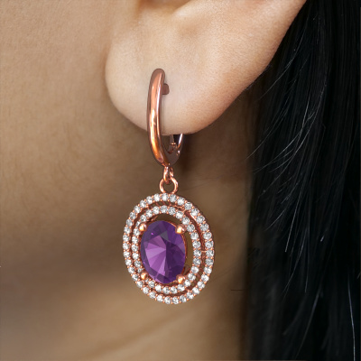 Met een paar exclusieve oorhangers mag iedere vrouw gezien worden. Bij DiamondsByMe creëren we luxe en bijzondere juwelen, en gebruiken we de mooiste edelmetalen en edelstenen. Deze exclusieve rosé gouden oorhangers zijn een voorbeeld van echt vakmanschap! Alle kleine details zijn door onze goudsmid met veel geduld en passie vervaardigd. Dit ambacht vraagt een deskundig oog en vaardige hand om deze oorhanger met uiterste precisie samen te stellen. En dat is precies waar onze goudsmeden enthousiast van worden! De prachtige amethisten zijn op een bijzondere manier gezet, zodat deze nog beter tot zijn recht komen. Dit geeft de oorhangers extra allure. Hierboven zie je rosé gouden Karren oorhangers met ovale amethist. De Karren [extra2_long]. Het mooiste cadeau wat je jezelf kunt geven, is een set luxe oorhangers welke jij zelf hebt ontworpen. En wat vervolgens door ons met de hand gemaakt wordt. Voor elk model kun je je eigen edelmetalen en edelstenen kiezen. Op deze wijze krijg je een paar unieke oorhangers. Deze set oorhangers is samen te stellen op verschillende manieren. Is dit het ontwerp voor jou, maar wil je iets aanpassen? Zoals bijvoorbeeld het gebruik van een edelsteen die bij deze oorhangers niet als optie wordt geboden via de website, dan kun je uiteraard altijd contact met ons opnemen. Graag helpen wij je bij de samenstelling van jouw luxe oorhangers. Met veel passie gaan onze edelsmeden met jouw oorhangers aan de slag in ons atelier, zodra je deze besteld hebt. Doordat we geen juwelen op voorraad hebben, hoeven we de voorraad niet door te berekenen in de prijs. En dat zie je terug in de prijs! We geven je graag een beste prijsgarantie. Om het voor jou makkelijker te maken kun je ieder besteld sieraad binnen 30 dagen na aflevering eenvoudig weer retour sturen.Heb je vragen, of wil je graag wat hulp bij het samenstellen van jouw Bijzonder Karren oorhangers? Aarzel dan niet om contact op te nemen met ons team van gepassioneerde medewerkers. Wij helpen je graag!