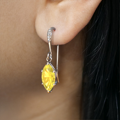 Bij de vrouw van nu hoort een set bijpassende modieuze oorhangers. Deze vind je bij DiamondsByMe. Onze goudsmeden gebruiken de beste edelmetalen en edelstenen, voor het vervaardigen van de mooiste juwelen. Zoals deze modieuze witgouden Laurie MRQ 2 oorhangers met gele saffier. Deze gele saffier wordt zorgvuldig geselecteerd, want in jouw oorhangers mogen alleen de mooiste gele saffier schitteren. Onze goudsmid vervaardigt jouw oorhangers in ons eigen atelier, en plaatst de gele saffier met uiterste precisie in de oorhangers. Vervolgens worden deze bijgewerkt en gepolijst totdat het resultaat zichtbaar is: de perfecte oorhangers! De Laurie MRQ 2 oorbellen worden met passie en liefde gemaakt door één van onze meester goudsmeden.. Het mooiste cadeau wat je jezelf kunt geven, is een set modieuze oorhangers welke jij zelf hebt ontworpen. En wat vervolgens door ons met de hand gemaakt wordt. Voor elk model kun je je eigen edelmetalen en edelstenen kiezen. Op deze wijze krijg je een paar unieke oorhangers. Deze set oorhangers is samen te stellen op verschillende manieren. Is dit het ontwerp voor jou, maar wil je iets aanpassen? Zoals bijvoorbeeld het gebruik van een edelsteen die bij deze oorhangers niet als optie wordt geboden via de website, dan kun je uiteraard altijd contact met ons opnemen. Graag helpen wij je bij de samenstelling van jouw modieuze oorhangers. Met veel passie gaan onze edelsmeden met jouw oorhangers aan de slag in ons atelier, zodra je deze besteld hebt. Doordat we geen juwelen op voorraad hebben, hoeven we de voorraad niet door te berekenen in de prijs. En dat zie je terug in de prijs! We geven je graag een beste prijsgarantie. Om het voor jou makkelijker te maken kun je ieder besteld sieraad binnen 30 dagen na aflevering eenvoudig weer retour sturen.Wil je jouw modieuze Laurie MRQ 2 oorhangers samenstellen, maar heb je hier hulp bij nodig? Of heb je andere vragen? Neem dan gerust contact met ons op. Het team van DiamondsByMe staat voor je klaar met passend advies.