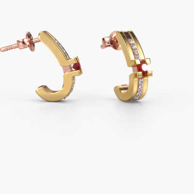 Bij de vrouw van nu hoort een set bijpassende moderne oorbellen. Deze vind je bij DiamondsByMe. Onze goudsmeden gebruiken de beste edelmetalen en edelstenen, voor het vervaardigen van de mooiste juwelen. Zoals deze moderne rosé gouden Myrthe oorbellen met robijn. Deze robijn wordt zorgvuldig geselecteerd, want in jouw oorbellen mogen alleen de mooiste robijn schitteren. Onze goudsmid vervaardigt jouw oorbellen in ons eigen atelier, en plaatst de robijn met uiterste precisie in de oorbellen. Vervolgens worden deze bijgewerkt en gepolijst totdat het resultaat zichtbaar is: de perfecte oorbellen! De Myrthe oorbellen zijn gemaakt om in jouw oren te stralen, ieder sieraad wordt met liefde door onze goudsmeden met de hand gemaakt.. Het mooie aan deze elegante oorbellen is, dat je deze helemaal zelf kunt samenstellen. Jouw stijl, jouw keuze, jouw oorbellen. Bovendien wordt jouw moderne rosé gouden oorbellen met de hand gemaakt, met eerlijke materialen! Omdat wij zelf alle oorbellen maken en direct aan jou leveren, kunnen wij je oorbellen leveren tegen een prijs die je nergens anders zult tegenkomen. De oorbellen worden pas gemaakt als we een bestelling krijgen, hierdoor hebben wij geen dure voorraden en kunnen wij jou de beste prijs garanderen. Wij begrijpen dat het kopen van oorbellen online spannend is, en denken graag met je mee over de mogelijkheden binnen jouw budget. Om het voor jou makkelijker te maken kun je ieder besteld sieraad binnen 30 dagen na aflevering eenvoudig weer retour sturen.Wil je jouw moderne Myrthe oorbellen samenstellen, maar heb je hier hulp bij nodig? Of heb je andere vragen? Neem dan gerust contact met ons op. Het team van DiamondsByMe staat voor je klaar met passend advies.