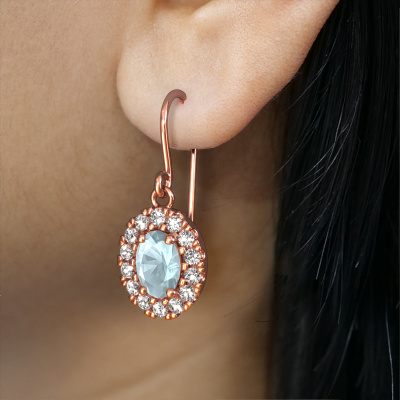 Met een paar exclusieve oorhangers mag iedere vrouw gezien worden. Bij DiamondsByMe creëren we klassieke en bijzondere juwelen, en gebruiken we de mooiste edelmetalen en edelstenen. Deze exclusieve rosé gouden oorhangers zijn een voorbeeld van echt vakmanschap! Alle kleine details zijn door onze goudsmid met veel geduld en passie vervaardigd. Dit ambacht vraagt een deskundig oog en vaardige hand om deze oorhanger met uiterste precisie samen te stellen. En dat is precies waar onze goudsmeden enthousiast van worden! De prachtige aquamarijn zijn op een bijzondere manier gezet, zodat deze nog beter tot zijn recht komen. Dit geeft de oorhangers extra allure. Hierboven zie je rosé gouden Jorinda 1 oorhangers met ovale aquamarijn. De Jorinda 1 zijn speciaal voor jou gemaakt, met aandacht voor detail en design.. Het mooie aan deze halo oorhangers is, dat je deze helemaal zelf kunt samenstellen. Jouw stijl, jouw keuze, jouw oorhangers. Bovendien wordt jouw klassieke rosé gouden oorhangers met de hand gemaakt, met eerlijke materialen! Onze goudsmeden vervaardigen pas je Jorinda 1 oorhangers, zodra je deze besteld hebt. We hebben geen voorraden. Het voordeel hiervan is dat we de voorraad niet door hoeven te berekenen in de prijs, en kunnen daardoor sieraden leveren tegen een bijzonder lage prijs. Om het voor jou makkelijker te maken kun je ieder besteld sieraad binnen 30 dagen na aflevering eenvoudig weer retour sturen.Heb je vragen, of wil je graag wat hulp bij het samenstellen van jouw Halo Jorinda 1 oorhangers? Aarzel dan niet om contact op te nemen met ons team van gepassioneerde medewerkers. Wij helpen je graag!