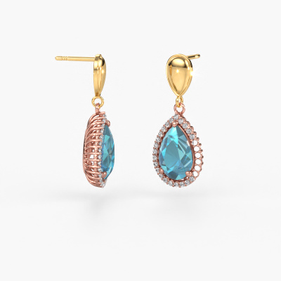 Met een paar exclusieve oorhangers mag iedere vrouw gezien worden. Bij DiamondsByMe creëren we exclusieve en bijzondere juwelen, en gebruiken we de mooiste edelmetalen en edelstenen. Deze exclusieve rosé gouden oorhangers zijn een voorbeeld van echt vakmanschap! Alle kleine details zijn door onze goudsmid met veel geduld en passie vervaardigd. Dit ambacht vraagt een deskundig oog en vaardige hand om deze oorhanger met uiterste precisie samen te stellen. En dat is precies waar onze goudsmeden enthousiast van worden! De prachtige blauw topaas zijn op een bijzondere manier gezet, zodat deze nog beter tot zijn recht komen. Dit geeft de oorhangers extra allure. Hierboven zie je rosé gouden Tilly per 1 oorhangers met peer blauw topaas. De Tilly per 1 oorbellen worden speciaal voor jou gemaakt door onze meester goudsmeden in ons eigen atelier.. Zodra je jouw exclusieve oorhangers hebt ontworpen met onze configurator, gaan onze goudsmeden aan de slag om deze voor je te vervaardigen. Dit gebeurt op ambachtelijke wijze met passie en zorgvuldigheid. Bovendien werken wij met eerlijk gewonnen materialen. Heb je specifieke wensen voor jouw Tilly per 1 oorhangers, maar zie je deze niet als optie staan in de configurator, neem dan contact op met ons team van ervaren ontwerpers. Omdat wij zelf alle oorhangers maken en direct aan jou leveren, kunnen wij je oorhangers leveren tegen een prijs die je nergens anders zult tegenkomen. De oorhangers worden pas gemaakt als we een bestelling krijgen, hierdoor hebben wij geen dure voorraden en kunnen wij jou de beste prijs garanderen. Wij begrijpen dat het kopen van oorhangers online spannend is, en denken graag met je mee over de mogelijkheden binnen jouw budget. Om het voor jou makkelijker te maken kun je ieder besteld sieraad binnen 30 dagen na aflevering eenvoudig weer retour sturen.Heb je vragen, of wil je graag wat hulp bij het samenstellen van jouw Druppel Tilly per 1 oorhangers? Aarzel dan niet om contact op te nemen met ons team van gepassioneerde medewerkers. Wij helpen je graag!