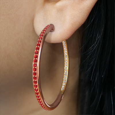 Met een paar exclusieve creolen mag iedere vrouw gezien worden. Bij DiamondsByMe creëren we exclusieve en bijzondere juwelen, en gebruiken we de mooiste edelmetalen en edelstenen. Deze exclusieve rosé gouden creolen zijn een voorbeeld van echt vakmanschap! Alle kleine details zijn door onze goudsmid met veel geduld en passie vervaardigd. Dit ambacht vraagt een deskundig oog en vaardige hand om deze creool met uiterste precisie samen te stellen. En dat is precies waar onze goudsmeden enthousiast van worden! De prachtige robijn zijn op een bijzondere manier gezet, zodat deze nog beter tot zijn recht komen. Dit geeft de creolen extra allure. Hierboven zie je rosé gouden Sina 30mm creolen met ronde robijn. De Sina 30mm oorbellen zijn gemaakt om in jouw oren te stralen, ieder sieraad wordt met liefde door onze goudsmeden met de hand gemaakt.. Het mooiste cadeau wat je jezelf kunt geven, is een set exclusieve creolen welke jij zelf hebt ontworpen. En wat vervolgens door ons met de hand gemaakt wordt. Voor elk model kun je je eigen edelmetalen en edelstenen kiezen. Op deze wijze krijg je een paar unieke creolen. Deze set creolen is samen te stellen op verschillende manieren. Is dit het ontwerp voor jou, maar wil je iets aanpassen? Zoals bijvoorbeeld het gebruik van een edelsteen die bij deze creolen niet als optie wordt geboden via de website, dan kun je uiteraard altijd contact met ons opnemen. Graag helpen wij je bij de samenstelling van jouw exclusieve creolen. Onze goudsmeden vervaardigen pas je Sina 30mm creolen, zodra je deze besteld hebt. We hebben geen voorraden. Het voordeel hiervan is dat we de voorraad niet door hoeven te berekenen in de prijs, en kunnen daardoor sieraden leveren tegen een bijzonder lage prijs. Om het voor jou makkelijker te maken kun je ieder besteld sieraad binnen 30 dagen na aflevering eenvoudig weer retour sturen.Heb je vragen, of wil je graag wat hulp bij het samenstellen van jouw Elegant Sina 30mm creolen? Aarzel dan niet om contact op te nemen met ons team van gepassioneerde medewerkers. Wij helpen je graag!