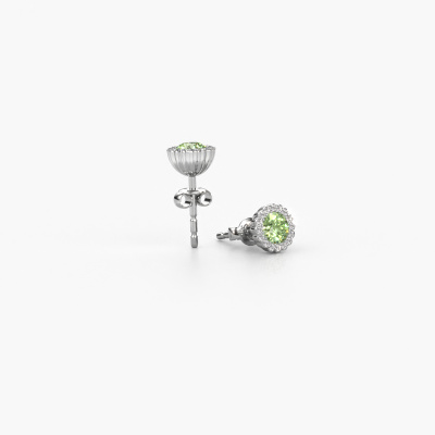 Dit rozet paar Queen oorbellen met prachtige ronde groene lab grown diamant, komen naar onze mening het beste tot hun recht met diamanten. Zelf kun je natuurlijk jouw edelstenen kiezen waardoor jouw unieke platina Queen oorbellen samengesteld worden naar jouw wensen. In het voorbeeld hierboven hebben wij ze met groene lab grown diamant 4.2 mm gezet. Al onze edelstenen worden met zorg geselecteerd en met uiterste precisie in jouw oorbellen gezet, zodat ze zo mooi mogelijk schitteren.