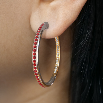 Deze set charmante creolen, met de naam Sina 25mm, zijn prachtige oorringetjes waarmee je jouw look helemaal af maakt. Onze goudsmeden combineren de modernste technieken met het echte ambacht, en vervaardigen jouw creolen met de hand in ons eigen atelier. De gekozen robijn worden met uiterste precisie in de creolen geplaatst, zodat het licht er optimaal in kan vallen. Prachtige, unieke creolen zijn het resultaat, perfect passend bij jouw eigen stijl! In dit voorbeeld zie je witgouden creolen met robijn 1.1 mm. Het mooie aan deze charmante creolen is, dat je deze helemaal zelf kunt samenstellen. Jouw stijl, jouw keuze, jouw creolen. Bovendien wordt jouw moderne witgouden creolen met de hand gemaakt, met eerlijke materialen!De Sina 25mm oorbellen zijn uniek, doordat je deze oorbellen geheel naar eigen wensen kunt samenstellen.Omdat wij zelf alle creolen maken en direct aan jou leveren, kunnen wij je creolen leveren tegen een prijs die je nergens anders zult tegenkomen. De creolen worden pas gemaakt als we een bestelling krijgen, hierdoor hebben wij geen dure voorraden en kunnen wij jou de beste prijs garanderen. Wij begrijpen dat het kopen van creolen online spannend is, en denken graag met je mee over de mogelijkheden binnen jouw budget.Om het voor jou makkelijker te maken kun je ieder besteld sieraad binnen 30 dagen na aflevering eenvoudig weer retour sturen.Nu kan het natuurlijk zijn dat je vragen hebt over de Sina 25mm creolen. Neem eens een kijkje bij onze veelgestelde vragen, of neem contact met ons op. Ons team van gepassioneerde medewerkers helpt je graag!
