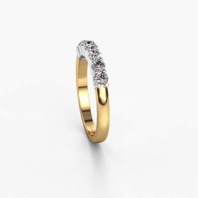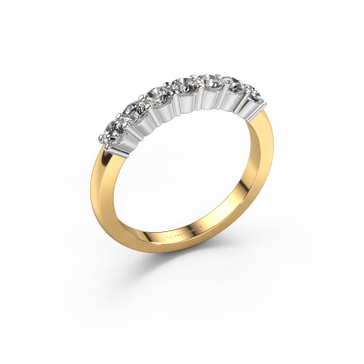 Deze 7 steens ring heeft de naam Yasmin 7. Dit type ring wordt een 'alliance' ring genoemd, omdat hij recht is uitgevoerd. Hierdoor kan de ring samen met andere ringen gedragen worden. Deze ring is uitgevoerd in 14 Carat goud en heeft lab-grown diamant in combinatie met lab-grown diamant ter grootte van 0.08 crt in de band. Zoals je ziet, worden er bij deze prachtige gouden alliance ring lab-grown diamanten naast elkaar op de ring gezet. De betekenis van alliance is letterlijk 'samenwerken'. En dat is precies wat deze edelstenen doen: samen creëren ze op de band een extra bijzonder effect bij een klassieke ring! Een prachtige symboliek voor een ring, toch? Alle zorgvuldig geselecteerde lab-grown diamanten worden met de hand geplaatst door onze meester goudsmid. Een zeer precies werkje, dat alleen door onze unieke combinatie van puur vakmanschap en de modernste technieken het optimale effect krijgt. Alle edelstenen moeten namelijk precies op dezelfde manier geplaatst worden om het licht perfect te verspreiden. Daarom zal de goudsmid deze ring steeds weer tegen het licht houden om te zien of de lab-grown diamanten juist geplaatst zijn. Het vraagt een vaardige hand en veel geduld, maar het resultaat is een echt meesterstuk. En daar gaan we voor!Met veel passie gaan onze edelsmeden met jouw ring aan de slag in ons atelier, zodra je deze besteld hebt. Doordat we geen sieraden op voorraad hebben, hoeven we de voorraad niet door te berekenen in de prijs. En dat zie je terug in de prijs! We geven je graag een beste prijsgarantie.Elke dag worden nieuwe ring ontwerpen toegevoegd aan de site door ons team van talentvolle en gepassioneerde ontwerpers. Hierbij wordt ernaar gestreefd om een zo gevarieerd mogelijke collectie aan te bieden. Heb je bepaalde ideeën voor een ring, neem dan eens contact op voor een offerte. Wij doen je een aanbod wat betreft prijs en kwaliteit waar je geen nee tegen zult kunnen zeggen.Om het voor jou makkelijker te maken kun je ieder besteld sieraad binnen 30 dagen na aflevering eenvoudig weer retour sturen.'
