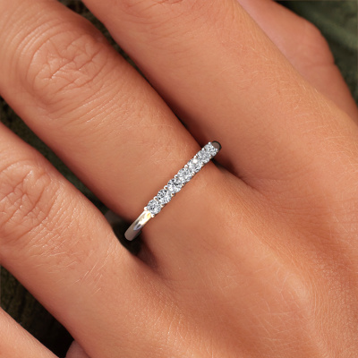 Deze 7 steens ring heeft de naam Yasmin 7. Dit type ring wordt een 'alliance' ring genoemd, omdat hij recht is uitgevoerd. Hierdoor kan de ring samen met andere ringen gedragen worden. Deze ring is uitgevoerd in platina en heeft diamant in combinatie met lab-grown diamant ter grootte van 0.03 crt in de band. Zoals je ziet, worden er bij deze prachtige platina alliance ring diamanten naast elkaar op de ring gezet. De betekenis van alliance is letterlijk 'samenwerken'. En dat is precies wat deze edelstenen doen: samen creëren ze op de band een extra bijzonder effect bij een klassieke ring! Een prachtige symboliek voor een ring, toch? Alle zorgvuldig geselecteerde diamanten worden met de hand geplaatst door onze meester goudsmid. Een zeer precies werkje, dat alleen door onze unieke combinatie van puur vakmanschap en de modernste technieken het optimale effect krijgt. Alle edelstenen moeten namelijk precies op dezelfde manier geplaatst worden om het licht perfect te verspreiden. Daarom zal de goudsmid deze ring steeds weer tegen het licht houden om te zien of de diamanten juist geplaatst zijn. Het vraagt een vaardige hand en veel geduld, maar het resultaat is een echt meesterstuk. En daar gaan we voor!Met veel passie gaan onze edelsmeden met jouw ring aan de slag in ons atelier, zodra je deze besteld hebt. Doordat we geen sieraden op voorraad hebben, hoeven we de voorraad niet door te berekenen in de prijs. En dat zie je terug in de prijs! We geven je graag een beste prijsgarantie.Elke dag worden nieuwe ring ontwerpen toegevoegd aan de site door ons team van talentvolle en gepassioneerde ontwerpers. Hierbij wordt ernaar gestreefd om een zo gevarieerd mogelijke collectie aan te bieden. Heb je bepaalde ideeën voor een ring, neem dan eens contact op voor een offerte. Wij doen je een aanbod wat betreft prijs en kwaliteit waar je geen nee tegen zult kunnen zeggen.Om het voor jou makkelijker te maken kun je ieder besteld sieraad binnen 30 dagen na aflevering eenvoudig weer retour sturen.'
