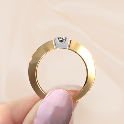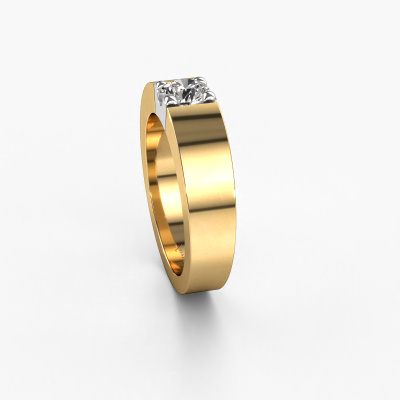 Deze 1 steens ring heeft de naam Dana 1. Dit type ring wordt een 'alliance' ring genoemd, omdat hij recht is uitgevoerd. Hierdoor kan de ring samen met andere ringen gedragen worden. Deze ring is uitgevoerd in 14 Carat goud en heeft 1 diamant ter grootte van 0.40 crt in de band. Zoals je ziet, wordt er bij deze prachtige gouden alliance ring 1 diamant naast elkaar op de ring gezet. De betekenis van alliance is letterlijk 'samenwerken'. En dat is precies wat deze edelstenen doen: samen creëren ze op de band een extra bijzonder effect bij een moderne ring! Een prachtige symboliek voor een ring, toch? Alle zorgvuldig geselecteerde diamanten worden met de hand geplaatst door onze meester goudsmid. Een zeer precies werkje, dat alleen door onze unieke combinatie van puur vakmanschap en de modernste technieken het optimale effect krijgt. Alle edelstenen moeten namelijk precies op dezelfde manier geplaatst worden om het licht perfect te verspreiden. Daarom zal de goudsmid deze ring steeds weer tegen het licht houden om te zien of de diamanten juist geplaatst zijn. Het vraagt een vaardige hand en veel geduld, maar het resultaat is een echt meesterstuk. En daar gaan we voor!Met veel passie gaan onze edelsmeden met jouw ring aan de slag in ons atelier, zodra je deze besteld hebt. Doordat we geen sieraden op voorraad hebben, hoeven we de voorraad niet door te berekenen in de prijs. En dat zie je terug in de prijs! We geven je graag een beste prijsgarantie.Elke dag worden nieuwe ring ontwerpen toegevoegd aan de site door ons team van talentvolle en gepassioneerde ontwerpers. Hierbij wordt ernaar gestreefd om een zo gevarieerd mogelijke collectie aan te bieden. Heb je bepaalde ideeën voor een ring, neem dan eens contact op voor een offerte. Wij doen je een aanbod wat betreft prijs en kwaliteit waar je geen nee tegen zult kunnen zeggen.Om het voor jou makkelijker te maken kun je ieder besteld sieraad binnen 30 dagen na aflevering eenvoudig weer retour sturen.'