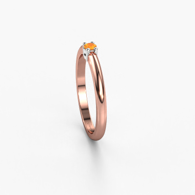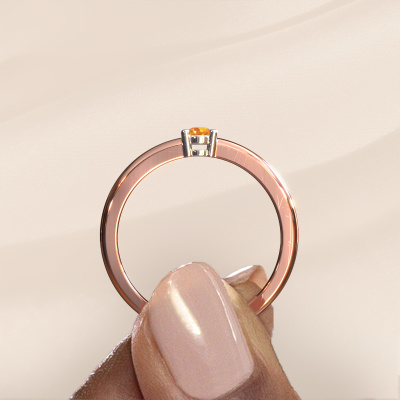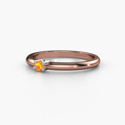 Deze 1 steens ring heeft de naam Michelle 1. Dit type ring wordt een 'alliance' ring genoemd, omdat hij recht is uitgevoerd. Hierdoor kan de ring samen met andere ringen gedragen worden. Deze ring is uitgevoerd in 14 Carat rosé goud en heeft 1 citrien ter grootte van 2.7 mm in de band. Zoals je ziet, wordt er bij deze prachtige rosé gouden alliance ring 1 citrien naast elkaar op de ring gezet. De betekenis van alliance is letterlijk 'samenwerken'. En dat is precies wat deze edelstenen doen: samen creëren ze op de band een extra bijzonder effect bij een klassieke ring! Een prachtige symboliek voor een ring, toch? Alle zorgvuldig geselecteerde citrien worden met de hand geplaatst door onze meester goudsmid. Een zeer precies werkje, dat alleen door onze unieke combinatie van puur vakmanschap en de modernste technieken het optimale effect krijgt. Alle edelstenen moeten namelijk precies op dezelfde manier geplaatst worden om het licht perfect te verspreiden. Daarom zal de goudsmid deze ring steeds weer tegen het licht houden om te zien of de citrien juist geplaatst zijn. Het vraagt een vaardige hand en veel geduld, maar het resultaat is een echt meesterstuk. En daar gaan we voor!Door het gebruik van de modernste technieken, gecombineerd met ambachtelijk vakmanschap kunnen wij alle ringen zelf in ons atelier maken. Iedere ring wordt pas gemaakt nadat deze besteld is. Dit heeft als bijkomend voordeel dat we kunnen leveren tegen een prijs die je nergens anders tegenkomt.