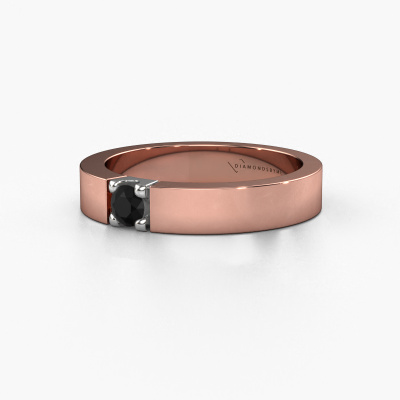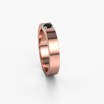 Deze 1 steens ring heeft de naam Dana 1. Dit type ring wordt een 'alliance' ring genoemd, omdat hij recht is uitgevoerd. Hierdoor kan de ring samen met andere ringen gedragen worden. Deze ring is uitgevoerd in 14 Carat rosé goud en heeft 1 zwarte diamant ter grootte van 0.24 crt in de band. Zoals je ziet, wordt er bij deze prachtige rosé gouden alliance ring 1 zwarte diamant naast elkaar op de ring gezet. De betekenis van alliance is letterlijk 'samenwerken'. En dat is precies wat deze edelstenen doen: samen creëren ze op de band een extra bijzonder effect bij een moderne ring! Een prachtige symboliek voor een ring, toch? Alle zorgvuldig geselecteerde zwarte diamanten worden met de hand geplaatst door onze meester goudsmid. Een zeer precies werkje, dat alleen door onze unieke combinatie van puur vakmanschap en de modernste technieken het optimale effect krijgt. Alle edelstenen moeten namelijk precies op dezelfde manier geplaatst worden om het licht perfect te verspreiden. Daarom zal de goudsmid deze ring steeds weer tegen het licht houden om te zien of de zwarte diamanten juist geplaatst zijn. Het vraagt een vaardige hand en veel geduld, maar het resultaat is een echt meesterstuk. En daar gaan we voor!Met veel passie gaan onze edelsmeden met jouw ring aan de slag in ons atelier, zodra je deze besteld hebt. Doordat we geen sieraden op voorraad hebben, hoeven we de voorraad niet door te berekenen in de prijs. En dat zie je terug in de prijs! We geven je graag een beste prijsgarantie.Elke dag worden nieuwe ring ontwerpen toegevoegd aan de site door ons team van talentvolle en gepassioneerde ontwerpers. Hierbij wordt ernaar gestreefd om een zo gevarieerd mogelijke collectie aan te bieden. Heb je bepaalde ideeën voor een ring, neem dan eens contact op voor een offerte. Wij doen je een aanbod wat betreft prijs en kwaliteit waar je geen nee tegen zult kunnen zeggen.Om het voor jou makkelijker te maken kun je ieder besteld sieraad binnen 30 dagen na aflevering eenvoudig weer retour sturen.'