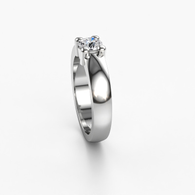 Deze 1 steens ring heeft de naam Yasmin 1. Dit type ring wordt een 'alliance' ring genoemd, omdat hij recht is uitgevoerd. Hierdoor kan de ring samen met andere ringen gedragen worden. Deze ring is uitgevoerd in 14 Carat witgoud en heeft 1 diamant ter grootte van 0.40 crt in de band. Zoals je ziet, wordt er bij deze prachtige witgouden alliance ring 1 diamant naast elkaar op de ring gezet. De betekenis van alliance is letterlijk 'samenwerken'. En dat is precies wat deze edelstenen doen: samen creëren ze op de band een extra bijzonder effect bij een klassieke ring! Een prachtige symboliek voor een ring, toch? Alle zorgvuldig geselecteerde diamanten worden met de hand geplaatst door onze meester goudsmid. Een zeer precies werkje, dat alleen door onze unieke combinatie van puur vakmanschap en de modernste technieken het optimale effect krijgt. Alle edelstenen moeten namelijk precies op dezelfde manier geplaatst worden om het licht perfect te verspreiden. Daarom zal de goudsmid deze ring steeds weer tegen het licht houden om te zien of de diamanten juist geplaatst zijn. Het vraagt een vaardige hand en veel geduld, maar het resultaat is een echt meesterstuk. En daar gaan we voor!Omdat wij zelf alle sieraden maken en direct aan jou leveren, kunnen wij je een ring leveren tegen een prijs die je nergens anders zult tegenkomen. Een ring wordt pas gemaakt als we een bestelling krijgen, hierdoor hebben wij geen dure voorraden en kunnen wij jou de beste prijs garanderen. Wij begrijpen dat het kopen van een sieraad online spannend is, en denken graag met je mee over de mogelijkheden binnen jouw budget.Elke dag worden nieuwe ring ontwerpen toegevoegd aan de site door ons team van talentvolle en gepassioneerde ontwerpers. Hierbij wordt ernaar gestreefd om een zo gevarieerd mogelijke collectie aan te bieden. Heb je bepaalde ideeën voor een ring, neem dan eens contact op voor een offerte. Wij doen je een aanbod wat betreft prijs en kwaliteit waar je geen nee tegen zult kunnen zeggen.Om het voor jou makkelijker te maken kun je ieder besteld sieraad binnen 30 dagen na aflevering eenvoudig weer retour sturen.'