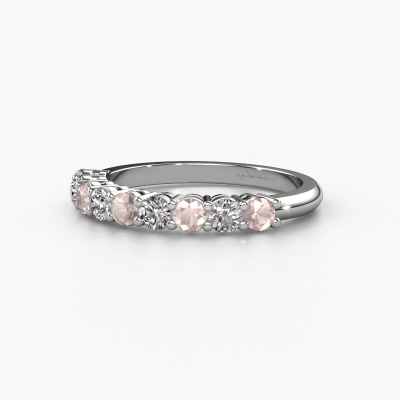Deze 9 steens ring heeft de naam Michelle 9. Dit type ring wordt een 'alliance' ring genoemd, omdat hij recht is uitgevoerd. Hierdoor kan de ring samen met andere ringen gedragen worden. Deze ring is uitgevoerd in platina en heeft morganiet champagne in combinatie met lab-grown diamant ter grootte van 2.7 mm in de band. Zoals je ziet, worden er bij deze prachtige platina alliance ring morganiet champagne naast elkaar op de ring gezet. De betekenis van alliance is letterlijk 'samenwerken'. En dat is precies wat deze edelstenen doen: samen creëren ze op de band een extra bijzonder effect bij een klassieke ring! Een prachtige symboliek voor een ring, toch? Alle zorgvuldig geselecteerde morganiet champagne worden met de hand geplaatst door onze meester goudsmid. Een zeer precies werkje, dat alleen door onze unieke combinatie van puur vakmanschap en de modernste technieken het optimale effect krijgt. Alle edelstenen moeten namelijk precies op dezelfde manier geplaatst worden om het licht perfect te verspreiden. Daarom zal de goudsmid deze ring steeds weer tegen het licht houden om te zien of de morganiet champagne juist geplaatst zijn. Het vraagt een vaardige hand en veel geduld, maar het resultaat is een echt meesterstuk. En daar gaan we voor!
