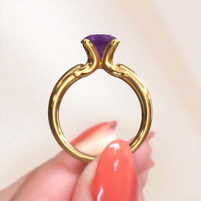 Wil je een mooie, edelstenen ring met een enkele edelsteen als eyecatcher? Wat denk je dan van deze Jodie ring? De Jodie ring zie je hier afgebeeld in goud met een prachtige 8 mm ronde amethist. De amethist wordt met zeer zorgvuldig uitgezocht door onze leveranciers van amethisten, en daarna volgens het oude ambacht door de goudsmid geplaatst in de ring. Deze wordt tot in het kleinste detail afgewerkt en gepolijst totdat een unieke ring is ontstaan met een prachtige amethist. Speciaal voor jou vervaardigd!Het mooiste cadeau wat je kunt geven, is een zelfontworpen fantasie ring. Ons team van gepassioneerde goudsmeden voegt iedere dag de mooiste nieuwe ontwerpen toe. En elk ontwerp kun je naar jouw wens aanpassen. Zo heb je de keuze welk edelmetaal gebruikt wordt, en kun je de kleur kiezen van de edelstenen. Zo wordt jouw fantasie Jodie ring ontwerp geheel uniek!Wil je jouw Jodie ring laten graveren, dan kun je dit doorgeven bij je bestelling. Wij zorgen ervoor dat je ring helemaal naar wens wordt vervaardigd. Door onze modernste technieken kunnen wij met uiterste precisie prachtige sieraden te ontwerpen en voor jou personaliseren in de hoogste juwelierskwaliteit. Tegelijkertijd zijn onze ringen altijd 30% goedkoper dan bij een andere juwelier. Dit komt doordat alle ringen pas vervaardigd worden op het moment dat deze besteld wordt en we daardoor geen dure voorraden hoeven te hanteren. Mocht je aan een bepaald budget gebonden zijn, kunnen we je graag adviseren welke combinatie je het beste kunt kiezen.Om het voor jou makkelijker te maken kun je ieder besteld sieraad binnen 30 dagen na aflevering eenvoudig weer retour sturen.Heb je vragen, dan kun je altijd een kijkje nemen bij onze veelgestelde vragen. Kom je er niet uit, of zie je het antwoord op je vraag er niet bij staan, neem dan gerust contact op met het DiamondsByMe team!