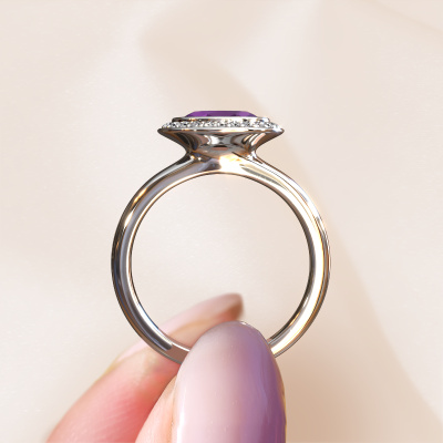 Wil je een mooie, edelstenen ring met een enkele edelsteen als eyecatcher? Wat denk je dan van deze Salena ring? De Salena ring zie je hier afgebeeld in platina met een prachtige 8x6 mm ovale amethist. De amethist wordt met zeer zorgvuldig uitgezocht door onze leveranciers van amethisten, en daarna volgens het oude ambacht door de goudsmid geplaatst in de ring. Deze wordt tot in het kleinste detail afgewerkt en gepolijst totdat een unieke ring is ontstaan met een prachtige amethist. Speciaal voor jou vervaardigd!Het mooie aan deze edelstenen ring is, dat je deze helemaal zelf kunt samenstellen. Jouw stijl, jouw keuze, jouw ring. Bovendien wordt jouw design platina ring met de hand gemaakt, met eerlijke materialen! Met onze configurator pas je dit gemakkelijk aan.Wil je jouw Salena ring laten graveren, dan kun je dit doorgeven bij je bestelling. Wij zorgen ervoor dat je ring helemaal naar wens wordt vervaardigd. Door het gebruik van de modernste technieken, gecombineerd met ambachtelijk vakmanschap kunnen wij alle ringen zelf in ons atelier maken. Iedere ring wordt pas gemaakt nadat deze besteld is. Dit heeft als bijkomend voordeel dat we kunnen leveren tegen een prijs die je nergens anders tegenkomt.Om het voor jou makkelijker te maken kun je ieder besteld sieraad binnen 30 dagen na aflevering eenvoudig weer retour sturen.Heb je vragen, dan kun je altijd een kijkje nemen bij onze veelgestelde vragen. Kom je er niet uit, of zie je het antwoord op je vraag er niet bij staan, neem dan gerust contact op met het DiamondsByMe team!