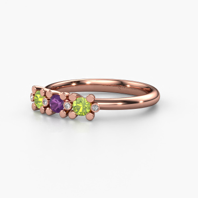 Wil je een mooie, fashionable ring met kleine edelstenen als eyecatcher? Wat denk je dan van deze Puk 2 ring? De Puk 2 ring zie je hier afgebeeld in rosé goud met prachtige amethisten. De amethisten worden zeer zorgvuldig uitgezocht door onze leveranciers van amethisten, en daarna volgens het oude ambacht door de goudsmid geplaatst in de ring. Deze wordt tot in het kleinste detail afgewerkt en gepolijst totdat een unieke ring is ontstaan met prachtige amethisten. Speciaal voor jou vervaardigd!Het mooiste cadeau wat je kunt geven, is een zelfontworpen unieke ring. Ons team van gepassioneerde goudsmeden voegt iedere dag de mooiste nieuwe ontwerpen toe. En elk ontwerp kun je naar jouw wens aanpassen. Zo heb je de keuze welk edelmetaal gebruikt wordt, en kun je de kleur kiezen van de edelstenen. Zo wordt jouw unieke Puk 2 ring ontwerp geheel uniek!Door het gebruik van de modernste technieken, gecombineerd met ambachtelijk vakmanschap kunnen wij alle ringen zelf in ons atelier maken. Iedere ring wordt pas gemaakt nadat deze besteld is. Dit heeft als bijkomend voordeel dat we kunnen leveren tegen een prijs die je nergens anders tegenkomt.Om het voor jou makkelijker te maken kun je ieder besteld sieraad binnen 30 dagen na aflevering eenvoudig weer retour sturen.Wellicht heb je vragen over de samenstelling van jouw persoonlijke Puk 2 ring. Aarzel niet om contact met ons op te nemen, wanneer je het antwoord op jouw vraag niet terugvindt bij de veelgestelde vragen.