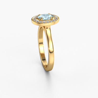Bovenstaande ring heeft de naam Madelon 1, dit type ring noemen we een Halo ring. De ring is uitgevoerd in 14 Carat goud en heeft als middensteen een ovale aquamarijn ter grootte van 7x5 mm en eromheen zijn kleine diamanten gezet. Bij deze beste prijs gouden halo ring zijn de kleinere edelstenen rondom de grote aquamarijn zijn gezet. Daar heeft deze ring zijn naam ook door heeft gekregen: halo betekent lichtkrans en dat is waar de kleinere edelstenen voor zorgen. Deze kleinere edelstenen moeten dan echter wel allen op dezelfde manier geplaatst zijn, zodat het licht niet doorbroken wordt in de aquamarijn en er inderdaad een prachtige lichtkrans gecreëerd wordt. En daar zorgen onze meestergoudsmeden voor. Met uiterste precisie wordt iedere zorgvuldig geselecteerde aquamarijn met de hand in de ring geplaatst. Steeds opnieuw wordt de ring tegen het licht gehouden om te zien of het speciale effect nog steeds zichtbaar is. Het resultaat is een unieke ring, waarbij de gekozen aquamarijn letterlijk het stralende middelpunt wordt. Een prachtige ring!Het mooie aan deze beste prijs ring is, dat je deze helemaal zelf kunt samenstellen. Jouw stijl, jouw keuze, jouw ring. Bovendien wordt jouw klassieke gouden ring met de hand gemaakt, met eerlijke materialen! Met onze configurator pas je dit gemakkelijk aan.Ben je gebonden aan een bepaald budget? Neem gerust contact met ons op, we adviseren graag over alle mogelijkheden. Sowieso leveren wij alle ringen tegen een prijs die je nergens anders tegen komt, doordat we de ring pas vervaardigen wanneer je deze besteld. Hierdoor kunnen wij je een beste prijs garantie geven.Om het voor jou makkelijker te maken kun je ieder besteld sieraad binnen 30 dagen na aflevering eenvoudig weer retour sturen.Wil je jouw unieke Madelon 1 ring ontwerpen, maar zijn bepaalde dingen je nog niet duidelijk? Neem dan even een kijkje op onze pagina met veelgestelde vragen, of neem contact op met ons team van ervaren vakmensen.