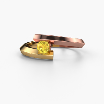 Deze ring heeft de naam Paulette, deze ring uitgevoerd in 14 Carat rosé goud is gezet met gele saffier. Ben je op zoek naar een unieke rosé gouden ring met een moderne uitstraling? Dan is dit een mooie ring, die je zelf naar jouw of haar smaak verder kunt aanpassen. Perfect voor de eigentijdse, moderne vrouw! In deze betaalbare ring is een prachtige gele saffier verwerkt. Deze is zorgvuldig geselecteerd, want op jouw ring mag alleen de mooiste edelsteen schitteren. Onze goudsmid vervaardigt jouw ring in ons eigen atelier, en plaatst de gele saffier met uiterste precisie in de ring. Vervolgens wordt deze bijgewerkt en gepolijst totdat het resultaat zichtbaar is: de perfecte ring!Met veel passie gaan onze edelsmeden met jouw ring aan de slag in ons atelier, zodra je deze besteld hebt. Doordat we geen sieraden op voorraad hebben, hoeven we de voorraad niet door te berekenen in de prijs. En dat zie je terug in de prijs! We geven je graag een beste prijsgarantie.Elke dag worden nieuwe ring ontwerpen toegevoegd aan de site door ons team van talentvolle en gepassioneerde ontwerpers. Hierbij wordt ernaar gestreefd om een zo gevarieerd mogelijke collectie aan te bieden. Heb je bepaalde ideeën voor een ring, neem dan eens contact op voor een offerte. Wij doen je een aanbod wat betreft prijs en kwaliteit waar je geen nee tegen zult kunnen zeggen.Om het voor jou makkelijker te maken kun je ieder besteld sieraad binnen 30 dagen na aflevering eenvoudig weer retour sturen.We zijn benieuwd hoe je jouw Paulette ring gaat personaliseren. Is iets je niet geheel duidelijk, dan kun je natuurlijk altijd contact opnemen. We helpen je graag!