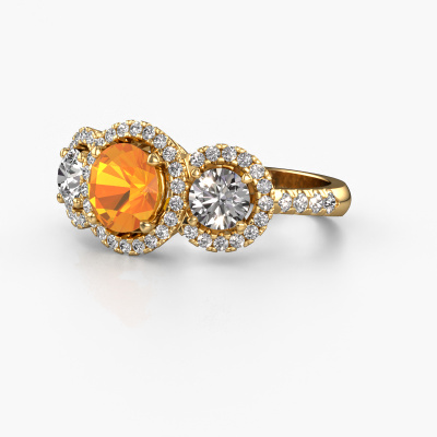 Deze exclusieve gouden ring, met de naam Lacie, is een puur staaltje vakmanschap! De ring is uitgevoerd in 14 Carat goud en is gezet met ronde citrien van 6.5 mm. De kleinste details zijn door onze goudsmid met veel geduld en passie vervaardigd. Dit echte ambacht vraagt een deskundig oog en vaardige hand om deze ring met uiterste precisie samen te stellen. En dat is precies waar onze goudsmeden enthousiast van worden! De prachtige citrien worden op een speciale manier gezet, zodat deze nog beter tot zijn recht komen. Dit geeft de ring extra allure. De ring is al uniek door zijn natuurlijke edelsteen, die wij speciaal geselecteerd hebben voor deze Lacie ring. En door jouw keuze voor edelmetaal creëer jij zelf een unieke ring. Jouw persoonlijke bijzondere Lacie ring stel je zelf samen, en wordt met liefde en passie door onze goudsmeden vervaardigd. Wil je liever een andere optie dan de hier afgebeelde gouden Lacie ring? Dan heb je via de configurator keuze uit diverse mogelijkheden. Kom je er niet helemaal uit, dan dienen wij je graag van advies!Omdat wij zelf alle sieraden maken en direct aan jou leveren, kunnen wij je een ring leveren tegen een prijs die je nergens anders zult tegenkomen. Een ring wordt pas gemaakt als we een bestelling krijgen, hierdoor hebben wij geen dure voorraden en kunnen wij jou de beste prijs garanderen. Wij begrijpen dat het kopen van een sieraad online spannend is, en denken graag met je mee over de mogelijkheden binnen jouw budget.Om het voor jou makkelijker te maken kun je ieder besteld sieraad binnen 30 dagen na aflevering eenvoudig weer retour sturen.Heb je misschien nog vragen? Wil je een bestaand ontwerp aanpassen met je eigen ideeën? Ook dan neem je contact met ons op. Ons team van vakmensen dient je graag van advies bij het creëren van jouw exclusief droom juweel.