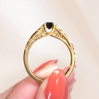 Wordt jouw aandacht ook altijd getrokken door vintage artikelen? Dan kun je er vrijwel zeker van zijn dat deze gouden ring helemaal bij jou past! Een nieuw model, gebaseerd op vintage motieven. Ietwat dromerig, een prachtig ontwerp! Zeker als je deze nog verder aanpast naar jouw smaak. In deze bijzondere ring zijn prachtige zwarte diamanten verwerkt. Zoals je ziet kun je zelf voor een edelsteen kiezen die bij jouw stijl past. Iedere edelsteen wordt zorgvuldig geselecteerd bij onze handelaren wereldwijd, onze goudsmid wil alleen de mooiste edelstenen op een juweel verwerken. Het is immers de kroon op zijn werk!De bijzondere Quinty ring zoals je hier afgebeeld ziet, kan helemaal naar jouw wensen verpersoonlijkt worden. De mogelijkheden met onze configurator zijn zeer uitgebreid, maar mocht je toch iets aan jouw persoonlijke Quinty ring willen aanpassen wat niet als optie geboden wordt, dan kun je altijd contact met ons opnemen.Door het gebruik van de modernste technieken, gecombineerd met ambachtelijk vakmanschap kunnen wij alle ringen zelf in ons atelier maken. Iedere ring wordt pas gemaakt nadat deze besteld is. Dit heeft als bijkomend voordeel dat we kunnen leveren tegen een prijs die je nergens anders tegenkomt.Om het voor jou makkelijker te maken kun je ieder besteld sieraad binnen 30 dagen na aflevering eenvoudig weer retour sturen.Wil je wat meer informatie hebben over de bijzonder Quinty ring? Kijk eens bij onze veelgestelde vragen. Uiteraard kun je ook altijd contact met ons team van gepassioneerde goudsmeden opnemen. Graag stellen wij jouw droom juweel samen voor je!
