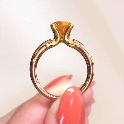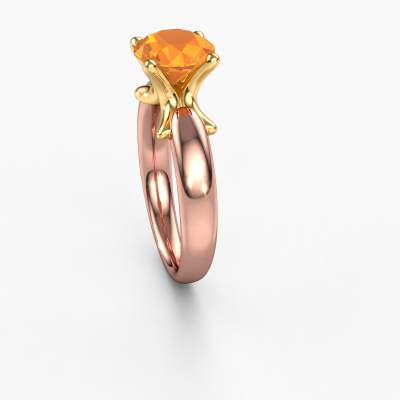 Wil je een mooie, edelstenen ring met een enkele edelsteen als eyecatcher? Wat denk je dan van deze Jodie ring? De Jodie ring zie je hier afgebeeld in rosé goud met een prachtige 8 mm ronde citrien. De citrien wordt met zeer zorgvuldig uitgezocht door onze leveranciers van citrien, en daarna volgens het oude ambacht door de goudsmid geplaatst in de ring. Deze wordt tot in het kleinste detail afgewerkt en gepolijst totdat een unieke ring is ontstaan met een prachtige citrien. Speciaal voor jou vervaardigd!Het mooiste cadeau wat je kunt geven, is een zelfontworpen fantasie ring. Ons team van gepassioneerde goudsmeden voegt iedere dag de mooiste nieuwe ontwerpen toe. En elk ontwerp kun je naar jouw wens aanpassen. Zo heb je de keuze welk edelmetaal gebruikt wordt, en kun je de kleur kiezen van de edelstenen. Zo wordt jouw fantasie Jodie ring ontwerp geheel uniek!Wil je jouw Jodie ring laten graveren, dan kun je dit doorgeven bij je bestelling. Wij zorgen ervoor dat je ring helemaal naar wens wordt vervaardigd. Door onze modernste technieken kunnen wij met uiterste precisie prachtige sieraden te ontwerpen en voor jou personaliseren in de hoogste juwelierskwaliteit. Tegelijkertijd zijn onze ringen altijd 30% goedkoper dan bij een andere juwelier. Dit komt doordat alle ringen pas vervaardigd worden op het moment dat deze besteld wordt en we daardoor geen dure voorraden hoeven te hanteren. Mocht je aan een bepaald budget gebonden zijn, kunnen we je graag adviseren welke combinatie je het beste kunt kiezen.Om het voor jou makkelijker te maken kun je ieder besteld sieraad binnen 30 dagen na aflevering eenvoudig weer retour sturen.Heb je vragen, dan kun je altijd een kijkje nemen bij onze veelgestelde vragen. Kom je er niet uit, of zie je het antwoord op je vraag er niet bij staan, neem dan gerust contact op met het DiamondsByMe team!