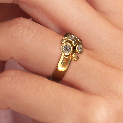 Hoe zou jij jouw stijl omschrijven? Hou jij van iets dat net anders dan anders is? Deze rozet gouden ring is een prachtige ring, die je zelf naar jouw of haar smaak verder kunt aanpassen. In deze ring is bruine diamant verwerkt. Deze bruine diamanten zijn zorgvuldig geselecteerd, want wij vinden dat op jouw ring alleen de mooiste edelsteen mag schitteren, toch? Onze goudsmid vervaardigt jouw ring beneden in ons eigen atelier, en plaatst de bruine diamant met uiterste precisie in de ring. Vervolgens wordt deze bijgewerkt en gepolijst totdat het resultaat zichtbaar is: de perfecte ring, die getuigt van een vrouw met smaak!Wat denk je van deze eigentijdse gouden ring? Deze Pameila ring stel je helemaal zelf samen met onze configurator. Vervolgens wordt jouw persoonlijke rozet Pameila ring met de hand gemaakt door onze goudsmeden. De keuze van het edelmetaal en de edelstenen kun je helemaal naar eigen wens invullen. Heb je bepaalde ideeën voor jouw ring, maar kun je deze niet bij onze opties vinden? Laat het ons dan gerust weten. Wij maken jouw persoonlijke eigentijdse ring geheel naar jouw wensen.Ben je gebonden aan een bepaald budget? Neem gerust contact met ons op, we adviseren graag over alle mogelijkheden. Sowieso leveren wij alle ringen tegen een prijs die je nergens anders tegen komt, doordat we de ring pas vervaardigen wanneer je deze besteld. Hierdoor kunnen wij je een beste prijs garantie geven.Om het voor jou makkelijker te maken kun je ieder besteld sieraad binnen 30 dagen na aflevering eenvoudig weer retour sturen.Heb je hulp nodig bij het samenstellen van jouw eigentijdse Pameila ring, dan staat ons team van gepassioneerde juwelenontwerpers klaar! Neem gerust contact met ons op, of kijk bij onze veelgestelde vragen.