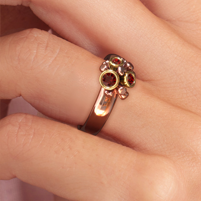 Hoe zou jij jouw stijl omschrijven? Hou jij van iets dat net anders dan anders is? Deze rozet rosé gouden ring is een prachtige ring, die je zelf naar jouw of haar smaak verder kunt aanpassen. In deze ring is granaat verwerkt. Deze granaat zijn zorgvuldig geselecteerd, want wij vinden dat op jouw ring alleen de mooiste edelsteen mag schitteren, toch? Onze goudsmid vervaardigt jouw ring beneden in ons eigen atelier, en plaatst de granaat met uiterste precisie in de ring. Vervolgens wordt deze bijgewerkt en gepolijst totdat het resultaat zichtbaar is: de perfecte ring, die getuigt van een vrouw met smaak!Wat denk je van deze eigentijdse rosé gouden ring? Deze Pameila ring stel je helemaal zelf samen met onze configurator. Vervolgens wordt jouw persoonlijke rozet Pameila ring met de hand gemaakt door onze goudsmeden. De keuze van het edelmetaal en de edelstenen kun je helemaal naar eigen wens invullen. Heb je bepaalde ideeën voor jouw ring, maar kun je deze niet bij onze opties vinden? Laat het ons dan gerust weten. Wij maken jouw persoonlijke eigentijdse ring geheel naar jouw wensen.Ben je gebonden aan een bepaald budget? Neem gerust contact met ons op, we adviseren graag over alle mogelijkheden. Sowieso leveren wij alle ringen tegen een prijs die je nergens anders tegen komt, doordat we de ring pas vervaardigen wanneer je deze besteld. Hierdoor kunnen wij je een beste prijs garantie geven.Om het voor jou makkelijker te maken kun je ieder besteld sieraad binnen 30 dagen na aflevering eenvoudig weer retour sturen.Heb je hulp nodig bij het samenstellen van jouw eigentijdse Pameila ring, dan staat ons team van gepassioneerde juwelenontwerpers klaar! Neem gerust contact met ons op, of kijk bij onze veelgestelde vragen.