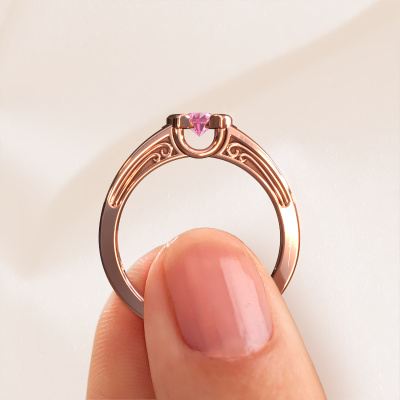 Wordt jouw aandacht ook altijd getrokken door vintage artikelen? Dan kun je er vrijwel zeker van zijn dat deze rosé gouden ring helemaal bij jou past! Een nieuw model, gebaseerd op vintage motieven. Ietwat dromerig, een prachtig ontwerp! Zeker als je deze nog verder aanpast naar jouw smaak. In deze elegante ring zijn prachtige roze saffier verwerkt. Zoals je ziet kun je zelf voor een edelsteen kiezen die bij jouw stijl past. Iedere edelsteen wordt zorgvuldig geselecteerd bij onze handelaren wereldwijd, onze goudsmid wil alleen de mooiste edelstenen op een juweel verwerken. Het is immers de kroon op zijn werk!Zodra je jouw Elena ring hebt ontworpen met onze configurator, gaan onze goudsmeden aan de slag om deze voor je te vervaardigen. Dit gebeurt op ambachtelijke wijze met passie en zorgvuldigheid. Bovendien werken wij met eerlijk gewonnen materialen. Wil je iets aanpassen, dan doe je dat met onze configurator. Heb je specifieke wensen voor jouw Elena ring, maar zie je deze niet als optie staan in de configurator, neem dan contact op met ons team van ervaren ontwerpers.Ben je gebonden aan een bepaald budget? Neem gerust contact met ons op, we adviseren graag over alle mogelijkheden. Sowieso leveren wij alle ringen tegen een prijs die je nergens anders tegen komt, doordat we de ring pas vervaardigen wanneer je deze besteld. Hierdoor kunnen wij je een beste prijs garantie geven.Om het voor jou makkelijker te maken kun je ieder besteld sieraad binnen 30 dagen na aflevering eenvoudig weer retour sturen.Heb je vragen over de elegante Elena ring? Kijk eens bij onze veelgestelde vragen. Natuurlijk kun je ook contact opnemen met het DiamondsByMe team. Wij dienen je graag van advies!