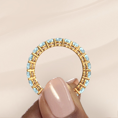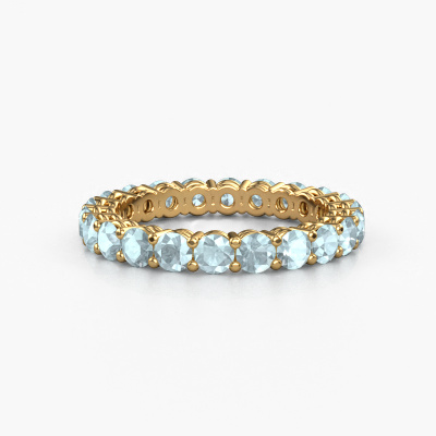 Deze aanschuifring heeft de naam Michelle full 3.0, dit type aanschuifring noemen we een eternity ring, hierbij worden volledig rondom de aanschuifring edelstenen gezet. Deze aanschuifring uitgevoerd in 14 Carat goud heeft allemaal kleine aquamarijn van 3 mm. De schitterende aquamarijn zijn allen identiek qua grootte en worden rondom in de band van de aanschuifring geplaatst. Alle aquamarijn worden zeer zorgvuldig geselecteerd, juist omdat ze zo identiek mogelijk moeten zijn om het beste resultaat te creëren op deze ring. Onze goudsmid plaatst alle aquamarijn heel precies met de hand worden geplaatst, en daardoor kan het eternity effect versterkt worden. Dit is de passie die onze goudsmeden drijft: het creëren van de perfecte ring. Dat is het mooie van ons ambacht! Het resultaat is een prachtige klassieke gouden ring, waarin de aquamarijn eindeloos door lijken te lopen. Het perfecte symbool voor jouw oneindige liefde voor haar! Hoe bijzonder is dat!Omdat wij zelf alle sieraden maken en direct aan jou leveren, kunnen wij je een ring leveren tegen een prijs die je nergens anders zult tegenkomen. Een ring wordt pas gemaakt als we een bestelling krijgen, hierdoor hebben wij geen dure voorraden en kunnen wij jou de beste prijs garanderen. Wij begrijpen dat het kopen van een sieraad online spannend is, en denken graag met je mee over de mogelijkheden binnen jouw budget.Onze talentvolle ontwerpers voegen elke dag nieuwe designs toe aan de website, en werken samen om tot een zo gevarieerd mogelijke collectie te komen met de mooiste sieraden. Wil je een ring laten maken naar eigen ontwerp, neem dan eens contact met ons op voor een offerte. Graag doen wij je een aanbod, waarvan wij denken dat je wat betreft kwaliteit en prijs versteld zult staan.Om het voor jou makkelijker te maken kun je ieder besteld sieraad binnen 30 dagen na aflevering eenvoudig weer retour sturen.