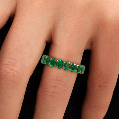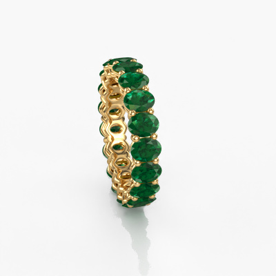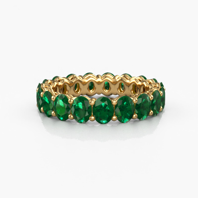 Deze aanschuifring heeft de naam Heddy OVL 3.5x4.5, dit type aanschuifring noemen we een eternity ring, hierbij worden volledig rondom de aanschuifring edelstenen gezet. Deze aanschuifring uitgevoerd in 14 Carat goud heeft allemaal kleine smaragd van 4.5x3.5 mm. De schitterende smaragd zijn allen identiek qua grootte en worden rondom in de band van de aanschuifring geplaatst. Alle smaragd worden zeer zorgvuldig geselecteerd, juist omdat ze zo identiek mogelijk moeten zijn om het beste resultaat te creëren op deze ring. Onze goudsmid plaatst alle smaragd heel precies met de hand worden geplaatst, en daardoor kan het eternity effect versterkt worden. Dit is de passie die onze goudsmeden drijft: het creëren van de perfecte ring. Dat is het mooie van ons ambacht! Het resultaat is een prachtige fantasie gouden ring, waarin de smaragd eindeloos door lijken te lopen. Het perfecte symbool voor jouw oneindige liefde voor haar! Hoe bijzonder is dat!Door het gebruik van de modernste technieken, gecombineerd met ambachtelijk vakmanschap kunnen wij alle ringen zelf in ons atelier maken. Iedere ring wordt pas gemaakt nadat deze besteld is. Dit heeft als bijkomend voordeel dat we kunnen leveren tegen een prijs die je nergens anders tegenkomt.Elke dag worden nieuwe ring ontwerpen toegevoegd aan de site door ons team van talentvolle en gepassioneerde ontwerpers. Hierbij wordt ernaar gestreefd om een zo gevarieerd mogelijke collectie aan te bieden. Heb je bepaalde ideeën voor een ring, neem dan eens contact op voor een offerte. Wij doen je een aanbod wat betreft prijs en kwaliteit waar je geen nee tegen zult kunnen zeggen.Om het voor jou makkelijker te maken kun je ieder besteld sieraad binnen 30 dagen na aflevering eenvoudig weer retour sturen.