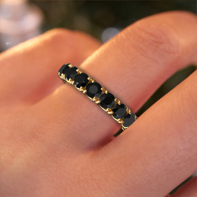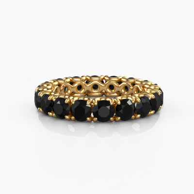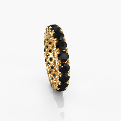 Deze aanschuifring heeft de naam Estee 3.7, dit type aanschuifring noemen we een eternity ring, hierbij worden volledig rondom de aanschuifring edelstenen gezet. Deze aanschuifring uitgevoerd in 14 Carat goud heeft allemaal kleine zwarte diamanten van 4.08 crt. De schitterende zwarte diamanten zijn allen identiek qua grootte en worden rondom in de band van de aanschuifring geplaatst. Alle zwarte diamanten worden zeer zorgvuldig geselecteerd, juist omdat ze zo identiek mogelijk moeten zijn om het beste resultaat te creëren op deze ring. Onze goudsmid plaatst alle zwarte diamanten heel precies met de hand worden geplaatst, en daardoor kan het eternity effect versterkt worden. Dit is de passie die onze goudsmeden drijft: het creëren van de perfecte ring. Dat is het mooie van ons ambacht! Het resultaat is een prachtige klassieke gouden ring, waarin de zwarte diamanten eindeloos door lijken te lopen. Het perfecte symbool voor jouw oneindige liefde voor haar! Hoe bijzonder is dat!Met veel passie gaan onze edelsmeden met jouw ring aan de slag in ons atelier, zodra je deze besteld hebt. Doordat we geen sieraden op voorraad hebben, hoeven we de voorraad niet door te berekenen in de prijs. En dat zie je terug in de prijs! We geven je graag een beste prijsgarantie.Onze talentvolle ontwerpers voegen elke dag nieuwe designs toe aan de website, en werken samen om tot een zo gevarieerd mogelijke collectie te komen met de mooiste sieraden. Wil je een ring laten maken naar eigen ontwerp, neem dan eens contact met ons op voor een offerte. Graag doen wij je een aanbod, waarvan wij denken dat je wat betreft kwaliteit en prijs versteld zult staan.Om het voor jou makkelijker te maken kun je ieder besteld sieraad binnen 30 dagen na aflevering eenvoudig weer retour sturen.