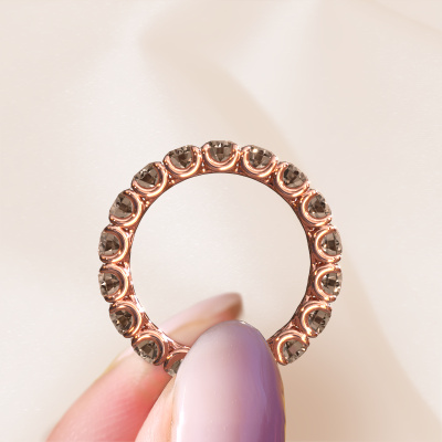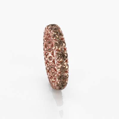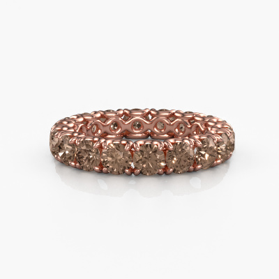 Deze aanschuifring heeft de naam Estee 3.7, dit type aanschuifring noemen we een eternity ring, hierbij worden volledig rondom de aanschuifring edelstenen gezet. Deze aanschuifring uitgevoerd in 14 Carat rosé goud heeft allemaal kleine bruine diamanten van 3.40 crt. De schitterende bruine diamanten zijn allen identiek qua grootte en worden rondom in de band van de aanschuifring geplaatst. Alle bruine diamanten worden zeer zorgvuldig geselecteerd, juist omdat ze zo identiek mogelijk moeten zijn om het beste resultaat te creëren op deze ring. Onze goudsmid plaatst alle bruine diamanten heel precies met de hand worden geplaatst, en daardoor kan het eternity effect versterkt worden. Dit is de passie die onze goudsmeden drijft: het creëren van de perfecte ring. Dat is het mooie van ons ambacht! Het resultaat is een prachtige klassieke rosé gouden ring, waarin de bruine diamanten eindeloos door lijken te lopen. Het perfecte symbool voor jouw oneindige liefde voor haar! Hoe bijzonder is dat!Met veel passie gaan onze edelsmeden met jouw ring aan de slag in ons atelier, zodra je deze besteld hebt. Doordat we geen sieraden op voorraad hebben, hoeven we de voorraad niet door te berekenen in de prijs. En dat zie je terug in de prijs! We geven je graag een beste prijsgarantie.Onze talentvolle ontwerpers voegen elke dag nieuwe designs toe aan de website, en werken samen om tot een zo gevarieerd mogelijke collectie te komen met de mooiste sieraden. Wil je een ring laten maken naar eigen ontwerp, neem dan eens contact met ons op voor een offerte. Graag doen wij je een aanbod, waarvan wij denken dat je wat betreft kwaliteit en prijs versteld zult staan.Om het voor jou makkelijker te maken kun je ieder besteld sieraad binnen 30 dagen na aflevering eenvoudig weer retour sturen.