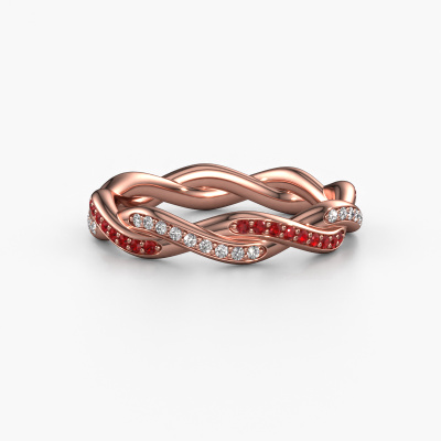 Deze aanschuifring heeft de naam Swing full, dit type aanschuifring noemen we een eternity ring, hierbij worden volledig rondom de aanschuifring edelstenen gezet. Deze aanschuifring uitgevoerd in 14 Carat rosé goud heeft allemaal kleine robijn van 1 mm. De schitterende robijn zijn allen identiek qua grootte en worden rondom in de band van de aanschuifring geplaatst. Alle robijn worden zeer zorgvuldig geselecteerd, juist omdat ze zo identiek mogelijk moeten zijn om het beste resultaat te creëren op deze ring. Onze goudsmid plaatst alle robijn heel precies met de hand worden geplaatst, en daardoor kan het eternity effect versterkt worden. Dit is de passie die onze goudsmeden drijft: het creëren van de perfecte ring. Dat is het mooie van ons ambacht! Het resultaat is een prachtige fantasie rosé gouden ring, waarin de robijn eindeloos door lijken te lopen. Het perfecte symbool voor jouw oneindige liefde voor haar! Hoe bijzonder is dat!Met veel passie gaan onze edelsmeden met jouw ring aan de slag in ons atelier, zodra je deze besteld hebt. Doordat we geen sieraden op voorraad hebben, hoeven we de voorraad niet door te berekenen in de prijs. En dat zie je terug in de prijs! We geven je graag een beste prijsgarantie.Iedere dag worden nieuwe sieraad ontwerpen toegevoegd aan de website. Ons team van gepassioneerde designers streeft ernaar om tot de mooiste ontwerpen te komen, en een zo gevarieerd mogelijk aanbod. Heb je ergens een ring gezien welke je wilt laten maken, stuur ons dan bericht. Wij sturen je graag een offerte toe. Hierin bieden wij de beste prijs en kwaliteit. Je zult dit zeker niet kunnen afslaan!Om het voor jou makkelijker te maken kun je ieder besteld sieraad binnen 30 dagen na aflevering eenvoudig weer retour sturen.
