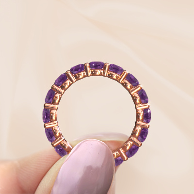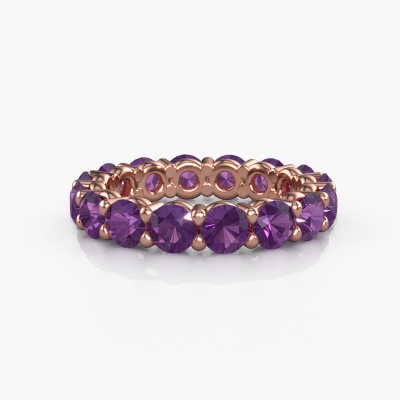 Deze Heddy rnd 4.0 aanschuifring in 14 Carat rosé goud is gezet met amethist. Deze rosé gouden aanschuifring, met de naam Heddy rnd 4.0, maakt jouw ringen collectie compleet. Zoals de naam het al zegt, is het een aanschuifring die naast een andere aanschuifring aan dezelfde vinger geschoven kan worden. Hierdoor kun jij je eigen stijl prachtig weergeven. Een aanschuifring wordt ook wel gekoppeld aan herinneringen, bijvoorbeeld aan een bijzonder persoon of een moment dat je niet meer wilt vergeten. Bij een huwelijksjubileum wordt er ook vaak gekozen voor een aanschuifring bij de trouwringen. Maar ook als stijlvolle mode-accessoire komt deze eternity aanschuifring naast jouw andere ringen helemaal tot zijn recht. Wat denk je van deze exclusieve rosé gouden aanschuifring? Deze Heddy rnd 4.0 aanschuifring stel je helemaal zelf samen met onze configurator. Vervolgens wordt jouw persoonlijke eternity Heddy rnd 4.0 aanschuifring met de hand gemaakt door onze goudsmeden. De keuze van het edelmetaal en de edelstenen kun je helemaal naar eigen wens invullen. Heb je bepaalde ideeën voor jouw aanschuifring, maar kun je deze niet bij onze opties vinden? Laat het ons dan gerust weten. Wij maken jouw persoonlijke exclusieve aanschuifring geheel naar jouw wensen.Ben je gebonden aan een bepaald budget? Neem gerust contact met ons op, we adviseren graag over alle mogelijkheden. Sowieso leveren wij alle ringen tegen een prijs die je nergens anders tegen komt, doordat we de ring pas vervaardigen wanneer je deze besteld. Hierdoor kunnen wij je een beste prijs garantie geven.Om het voor jou makkelijker te maken kun je ieder besteld sieraad binnen 30 dagen na aflevering eenvoudig weer retour sturen.Heb je vragen over het samenstellen van jouw eternity Heddy rnd 4.0 eternity ring? Geen enkel probleem. Neem contact met ons op, en ons team van juwelenontwerpers helpt je verder.