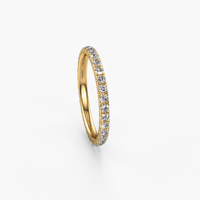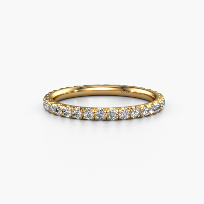 Deze aanschuifring heeft de naam Jackie 1.7, dit type aanschuifring noemen we een eternity ring, hierbij worden volledig rondom de aanschuifring edelstenen gezet. Deze aanschuifring uitgevoerd in 14 Carat goud heeft allemaal kleine diamanten, 0.02 crt. Deze gouden eternity aanschuifring is een prachtige, betekenisvolle aanschuifring om je aanzoek wel heel bijzonder te maken. De schitterende diamanten zijn allen identiek qua grootte en worden rondom de aanschuifring geplaatst. Alle diamanten worden zeer zorgvuldig geselecteerd, juist omdat ze zo identiek mogelijk moeten zijn om het beste resultaat te creëren op deze ring. Het zijn natuurproducten, waardoor er toch minuscule verschillen tussen de stenen kunnen zitten. Maar doordat alle diamanten door onze goudsmid met de hand heel nauwkeurig worden geplaatst, kan het eternity effect versterkt worden. Het vraagt veel geduld en een vaardige hand, maar het vervaardigen van de perfecte aanschuifring is de passie dat onze goudsmeden drijft. Het resultaat wordt een prachtige ring, waarin de diamanten eindeloos door lijken te lopen. Het symbool voor jouw oneindige liefde voor haar! Prachtig toch?Met veel passie gaan onze edelsmeden met jouw ring aan de slag in ons atelier, zodra je deze besteld hebt. Doordat we geen sieraden op voorraad hebben, hoeven we de voorraad niet door te berekenen in de prijs. En dat zie je terug in de prijs! We geven je graag een beste prijsgarantie.Onze talentvolle ontwerpers voegen elke dag nieuwe designs toe aan de website, en werken samen om tot een zo gevarieerd mogelijke collectie te komen met de mooiste sieraden. Wil je een ring laten maken naar eigen ontwerp, neem dan eens contact met ons op voor een offerte. Graag doen wij je een aanbod, waarvan wij denken dat je wat betreft kwaliteit en prijs versteld zult staan.Om het voor jou makkelijker te maken kun je ieder besteld sieraad binnen 30 dagen na aflevering eenvoudig weer retour sturen.