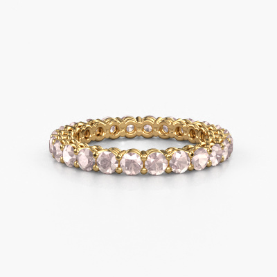 Deze aanschuifring heeft de naam Michelle full 2.7, dit type aanschuifring noemen we een eternity ring, hierbij worden volledig rondom de aanschuifring edelstenen gezet. Deze aanschuifring uitgevoerd in 14 Carat goud heeft allemaal kleine morganiet champagne van 2.7 mm. De schitterende morganiet champagne zijn allen identiek qua grootte en worden rondom in de band van de aanschuifring geplaatst. Alle morganiet champagne worden zeer zorgvuldig geselecteerd, juist omdat ze zo identiek mogelijk moeten zijn om het beste resultaat te creëren op deze ring. Onze goudsmid plaatst alle morganiet champagne heel precies met de hand worden geplaatst, en daardoor kan het eternity effect versterkt worden. Dit is de passie die onze goudsmeden drijft: het creëren van de perfecte ring. Dat is het mooie van ons ambacht! Het resultaat is een prachtige klassieke gouden ring, waarin de morganiet champagne eindeloos door lijken te lopen. Het perfecte symbool voor jouw oneindige liefde voor haar! Hoe bijzonder is dat!