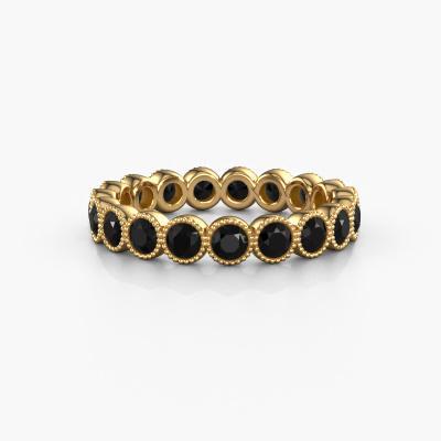 Deze ring heeft de naam Mariam 0.07, dit type ring noemen we een eternity ring, hierbij worden volledig rondom de ring edelstenen gezet. Deze ring uitgevoerd in 14 Carat goud heeft allemaal kleine zwarte diamanten van 1.728 crt. De schitterende zwarte diamanten zijn allen identiek qua grootte en worden rondom in de band van de ring geplaatst. Alle zwarte diamanten worden zeer zorgvuldig geselecteerd, juist omdat ze zo identiek mogelijk moeten zijn om het beste resultaat te creëren op deze ring. Onze goudsmid plaatst alle zwarte diamanten heel precies met de hand worden geplaatst, en daardoor kan het eternity effect versterkt worden. Dit is de passie die onze goudsmeden drijft: het creëren van de perfecte ring. Dat is het mooie van ons ambacht! Het resultaat is een prachtige trendy gouden ring, waarin de zwarte diamanten eindeloos door lijken te lopen. Het perfecte symbool voor jouw oneindige liefde voor haar! Hoe bijzonder is dat!Met veel passie gaan onze edelsmeden met jouw ring aan de slag in ons atelier, zodra je deze besteld hebt. Doordat we geen sieraden op voorraad hebben, hoeven we de voorraad niet door te berekenen in de prijs. En dat zie je terug in de prijs! We geven je graag een beste prijsgarantie.Onze talentvolle ontwerpers voegen elke dag nieuwe designs toe aan de website, en werken samen om tot een zo gevarieerd mogelijke collectie te komen met de mooiste sieraden. Wil je een ring laten maken naar eigen ontwerp, neem dan eens contact met ons op voor een offerte. Graag doen wij je een aanbod, waarvan wij denken dat je wat betreft kwaliteit en prijs versteld zult staan.Om het voor jou makkelijker te maken kun je ieder besteld sieraad binnen 30 dagen na aflevering eenvoudig weer retour sturen.