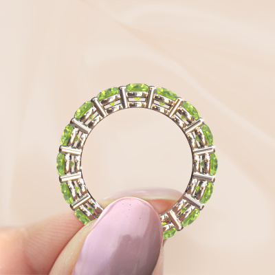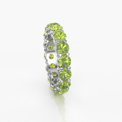 Deze aanschuifring heeft de naam Michelle full 4.2, dit type aanschuifring noemen we een eternity ring, hierbij worden volledig rondom de aanschuifring edelstenen gezet. Deze aanschuifring uitgevoerd in 14 Carat witgoud heeft allemaal kleine peridoot, 4.2 mm. Deze witgouden eternity aanschuifring is een prachtige, betekenisvolle aanschuifring om je aanzoek wel heel bijzonder te maken. De schitterende peridoot zijn allen identiek qua grootte en worden rondom de aanschuifring geplaatst. Alle peridoot worden zeer zorgvuldig geselecteerd, juist omdat ze zo identiek mogelijk moeten zijn om het beste resultaat te creëren op deze ring. Het zijn natuurproducten, waardoor er toch minuscule verschillen tussen de stenen kunnen zitten. Maar doordat alle peridoot door onze goudsmid met de hand heel nauwkeurig worden geplaatst, kan het eternity effect versterkt worden. Het vraagt veel geduld en een vaardige hand, maar het vervaardigen van de perfecte aanschuifring is de passie dat onze goudsmeden drijft. Het resultaat wordt een prachtige ring, waarin de peridoot eindeloos door lijken te lopen. Het symbool voor jouw oneindige liefde voor haar! Prachtig toch?Onze goudsmeden vervaardigen pas je ring, zodra je deze besteld hebt. We hebben geen voorraden. Het voordeel hiervan is dat we de voorraad niet door hoeven te berekenen in de prijs, en wij daardoor sieraden kunnen leveren tegen een bijzonder lage prijs.Iedere dag worden nieuwe sieraad ontwerpen toegevoegd aan de website. Ons team van gepassioneerde designers streeft ernaar om tot de mooiste ontwerpen te komen, en een zo gevarieerd mogelijk aanbod. Heb je ergens een ring gezien welke je wilt laten maken, stuur ons dan bericht. Wij sturen je graag een offerte toe. Hierin bieden wij de beste prijs en kwaliteit. Je zult dit zeker niet kunnen afslaan!Om het voor jou makkelijker te maken kun je ieder besteld sieraad binnen 30 dagen na aflevering eenvoudig weer retour sturen.