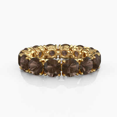 Deze ring heeft de naam Vivienne 5.0, dit type ring noemen we een eternity ring, hierbij worden volledig rondom de ring edelstenen gezet. Deze ring uitgevoerd in 14 Carat goud heeft allemaal kleine rookkwarts van 5 mm. De schitterende rookkwarts zijn allen identiek qua grootte en worden rondom in de band van de ring geplaatst. Alle rookkwarts worden zeer zorgvuldig geselecteerd, juist omdat ze zo identiek mogelijk moeten zijn om het beste resultaat te creëren op deze ring. Onze goudsmid plaatst alle rookkwarts heel precies met de hand worden geplaatst, en daardoor kan het eternity effect versterkt worden. Dit is de passie die onze goudsmeden drijft: het creëren van de perfecte ring. Dat is het mooie van ons ambacht! Het resultaat is een prachtige exclusieve gouden ring, waarin de rookkwarts eindeloos door lijken te lopen. Het perfecte symbool voor jouw oneindige liefde voor haar! Hoe bijzonder is dat!Door onze modernste technieken kunnen wij met uiterste precisie prachtige sieraden te ontwerpen en voor jou personaliseren in de hoogste juwelierskwaliteit. Tegelijkertijd zijn onze ringen altijd 30% goedkoper dan bij een andere juwelier. Dit komt doordat alle ringen pas vervaardigd worden op het moment dat deze besteld wordt en we daardoor geen dure voorraden hoeven te hanteren. Mocht je aan een bepaald budget gebonden zijn, kunnen we je graag adviseren welke combinatie je het beste kunt kiezen.Iedere dag worden nieuwe sieraad ontwerpen toegevoegd aan de website. Ons team van gepassioneerde designers streeft ernaar om tot de mooiste ontwerpen te komen, en een zo gevarieerd mogelijk aanbod. Heb je ergens een ring gezien welke je wilt laten maken, stuur ons dan bericht. Wij sturen je graag een offerte toe. Hierin bieden wij de beste prijs en kwaliteit. Je zult dit zeker niet kunnen afslaan!Om het voor jou makkelijker te maken kun je ieder besteld sieraad binnen 30 dagen na aflevering eenvoudig weer retour sturen.