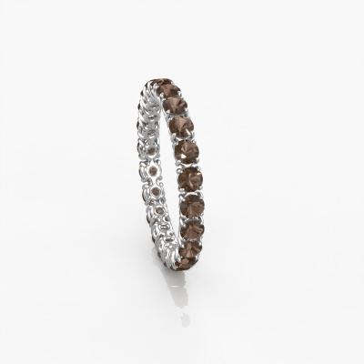 Deze ring heeft de naam Vivienne 2.7, dit type ring noemen we een eternity ring, hierbij worden volledig rondom de ring edelstenen gezet. Deze ring uitgevoerd in 14 Carat witgoud heeft allemaal kleine rookkwarts van 2.7 mm. De schitterende rookkwarts zijn allen identiek qua grootte en worden rondom in de band van de ring geplaatst. Alle rookkwarts worden zeer zorgvuldig geselecteerd, juist omdat ze zo identiek mogelijk moeten zijn om het beste resultaat te creëren op deze ring. Onze goudsmid plaatst alle rookkwarts heel precies met de hand worden geplaatst, en daardoor kan het eternity effect versterkt worden. Dit is de passie die onze goudsmeden drijft: het creëren van de perfecte ring. Dat is het mooie van ons ambacht! Het resultaat is een prachtige klassieke witgouden ring, waarin de rookkwarts eindeloos door lijken te lopen. Het perfecte symbool voor jouw oneindige liefde voor haar! Hoe bijzonder is dat!Met veel passie gaan onze edelsmeden met jouw ring aan de slag in ons atelier, zodra je deze besteld hebt. Doordat we geen sieraden op voorraad hebben, hoeven we de voorraad niet door te berekenen in de prijs. En dat zie je terug in de prijs! We geven je graag een beste prijsgarantie.Onze talentvolle ontwerpers voegen elke dag nieuwe designs toe aan de website, en werken samen om tot een zo gevarieerd mogelijke collectie te komen met de mooiste sieraden. Wil je een ring laten maken naar eigen ontwerp, neem dan eens contact met ons op voor een offerte. Graag doen wij je een aanbod, waarvan wij denken dat je wat betreft kwaliteit en prijs versteld zult staan.Om het voor jou makkelijker te maken kun je ieder besteld sieraad binnen 30 dagen na aflevering eenvoudig weer retour sturen.