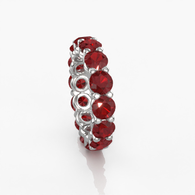 Deze ring heeft de naam Heddy rnd 4.7, dit type ring noemen we een eternity ring, hierbij worden volledig rondom de ring edelstenen gezet. Deze ring uitgevoerd in 14 Carat witgoud heeft allemaal kleine robijn, 4.7 mm. Deze witgouden eternity ring is een prachtige, betekenisvolle ring om je aanzoek wel heel bijzonder te maken. De schitterende robijn zijn allen identiek qua grootte en worden rondom de ring geplaatst. Alle robijn worden zeer zorgvuldig geselecteerd, juist omdat ze zo identiek mogelijk moeten zijn om het beste resultaat te creëren op deze ring. Het zijn natuurproducten, waardoor er toch minuscule verschillen tussen de stenen kunnen zitten. Maar doordat alle robijn door onze goudsmid met de hand heel nauwkeurig worden geplaatst, kan het eternity effect versterkt worden. Het vraagt veel geduld en een vaardige hand, maar het vervaardigen van de perfecte ring is de passie dat onze goudsmeden drijft. Het resultaat wordt een prachtige ring, waarin de robijn eindeloos door lijken te lopen. Het symbool voor jouw oneindige liefde voor haar! Prachtig toch?Omdat wij zelf alle sieraden maken en direct aan jou leveren, kunnen wij je een ring leveren tegen een prijs die je nergens anders zult tegenkomen. Een ring wordt pas gemaakt als we een bestelling krijgen, hierdoor hebben wij geen dure voorraden en kunnen wij jou de beste prijs garanderen. Wij begrijpen dat het kopen van een sieraad online spannend is, en denken graag met je mee over de mogelijkheden binnen jouw budget.Elke dag worden nieuwe ring ontwerpen toegevoegd aan de site door ons team van talentvolle en gepassioneerde ontwerpers. Hierbij wordt ernaar gestreefd om een zo gevarieerd mogelijke collectie aan te bieden. Heb je bepaalde ideeën voor een ring, neem dan eens contact op voor een offerte. Wij doen je een aanbod wat betreft prijs en kwaliteit waar je geen nee tegen zult kunnen zeggen.Om het voor jou makkelijker te maken kun je ieder besteld sieraad binnen 30 dagen na aflevering eenvoudig weer retour sturen.