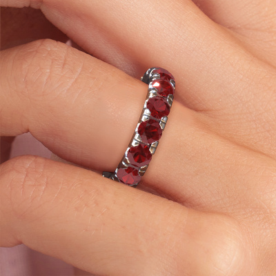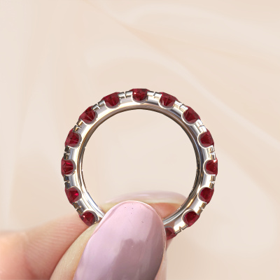 Deze Jackie 4.0 aanschuifring in 14 Carat witgoud is gezet met robijn. Deze witgouden aanschuifring, met de naam Jackie 4.0, maakt jouw ringen collectie compleet. Zoals de naam het al zegt, is het een aanschuifring die naast een andere aanschuifring aan dezelfde vinger geschoven kan worden. Hierdoor kun jij je eigen stijl prachtig weergeven. Een aanschuifring wordt ook wel gekoppeld aan herinneringen, bijvoorbeeld aan een bijzonder persoon of een moment dat je niet meer wilt vergeten. Bij een huwelijksjubileum wordt er ook vaak gekozen voor een aanschuifring bij de trouwringen. Maar ook als stijlvolle mode-accessoire komt deze eternity aanschuifring naast jouw andere ringen helemaal tot zijn recht. Zodra je jouw Jackie 4.0 aanschuifring hebt ontworpen met onze configurator, gaan onze goudsmeden aan de slag om deze voor je te vervaardigen. Dit gebeurt op ambachtelijke wijze met passie en zorgvuldigheid. Bovendien werken wij met eerlijk gewonnen materialen. Wil je iets aanpassen, dan doe je dat met onze configurator. Heb je specifieke wensen voor jouw Jackie 4.0 aanschuifring, maar zie je deze niet als optie staan in de configurator, neem dan contact op met ons team van ervaren ontwerpers.Ben je gebonden aan een bepaald budget? Neem gerust contact met ons op, we adviseren graag over alle mogelijkheden. Sowieso leveren wij alle ringen tegen een prijs die je nergens anders tegen komt, doordat we de ring pas vervaardigen wanneer je deze besteld. Hierdoor kunnen wij je een beste prijs garantie geven.Om het voor jou makkelijker te maken kun je ieder besteld sieraad binnen 30 dagen na aflevering eenvoudig weer retour sturen.Heb je vragen over het samenstellen van jouw eternity Jackie 4.0 eternity ring? Geen enkel probleem. Neem contact met ons op, en ons team van juwelenontwerpers helpt je verder.