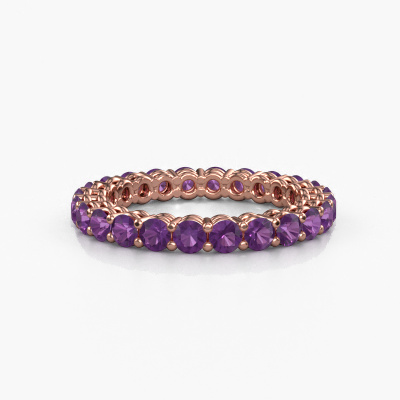 Deze aanschuifring heeft de naam Michelle full 2.7, dit type aanschuifring noemen we een eternity ring, hierbij worden volledig rondom de aanschuifring edelstenen gezet. Deze aanschuifring uitgevoerd in 14 Carat rosé goud heeft allemaal kleine amethisten van 2.7 mm. De schitterende amethisten zijn allen identiek qua grootte en worden rondom in de band van de aanschuifring geplaatst. Alle amethisten worden zeer zorgvuldig geselecteerd, juist omdat ze zo identiek mogelijk moeten zijn om het beste resultaat te creëren op deze ring. Onze goudsmid plaatst alle amethisten heel precies met de hand worden geplaatst, en daardoor kan het eternity effect versterkt worden. Dit is de passie die onze goudsmeden drijft: het creëren van de perfecte ring. Dat is het mooie van ons ambacht! Het resultaat is een prachtige klassieke rosé gouden ring, waarin de amethisten eindeloos door lijken te lopen. Het perfecte symbool voor jouw oneindige liefde voor haar! Hoe bijzonder is dat!Door het gebruik van de modernste technieken, gecombineerd met ambachtelijk vakmanschap kunnen wij alle ringen zelf in ons atelier maken. Iedere ring wordt pas gemaakt nadat deze besteld is. Dit heeft als bijkomend voordeel dat we kunnen leveren tegen een prijs die je nergens anders tegenkomt.Iedere dag worden nieuwe sieraad ontwerpen toegevoegd aan de website. Ons team van gepassioneerde designers streeft ernaar om tot de mooiste ontwerpen te komen, en een zo gevarieerd mogelijk aanbod. Heb je ergens een ring gezien welke je wilt laten maken, stuur ons dan bericht. Wij sturen je graag een offerte toe. Hierin bieden wij de beste prijs en kwaliteit. Je zult dit zeker niet kunnen afslaan!Om het voor jou makkelijker te maken kun je ieder besteld sieraad binnen 30 dagen na aflevering eenvoudig weer retour sturen.