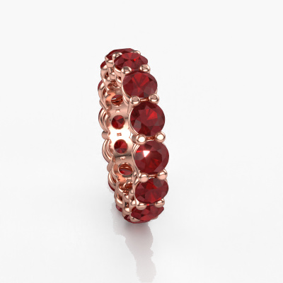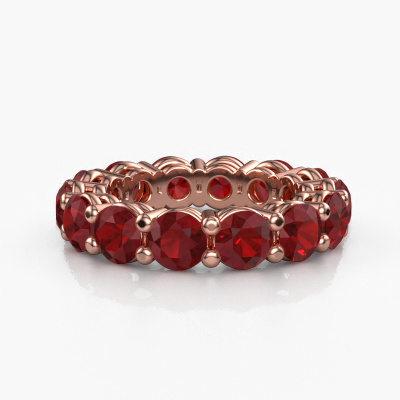 Deze aanschuifring heeft de naam Michelle full 4.7, dit type aanschuifring noemen we een eternity ring, hierbij worden volledig rondom de aanschuifring edelstenen gezet. Deze aanschuifring uitgevoerd in 14 Carat rosé goud heeft allemaal kleine robijn van 4.7 mm. De schitterende robijn zijn allen identiek qua grootte en worden rondom in de band van de aanschuifring geplaatst. Alle robijn worden zeer zorgvuldig geselecteerd, juist omdat ze zo identiek mogelijk moeten zijn om het beste resultaat te creëren op deze ring. Onze goudsmid plaatst alle robijn heel precies met de hand worden geplaatst, en daardoor kan het eternity effect versterkt worden. Dit is de passie die onze goudsmeden drijft: het creëren van de perfecte ring. Dat is het mooie van ons ambacht! Het resultaat is een prachtige exclusieve rosé gouden ring, waarin de robijn eindeloos door lijken te lopen. Het perfecte symbool voor jouw oneindige liefde voor haar! Hoe bijzonder is dat!Omdat wij zelf alle sieraden maken en direct aan jou leveren, kunnen wij je een ring leveren tegen een prijs die je nergens anders zult tegenkomen. Een ring wordt pas gemaakt als we een bestelling krijgen, hierdoor hebben wij geen dure voorraden en kunnen wij jou de beste prijs garanderen. Wij begrijpen dat het kopen van een sieraad online spannend is, en denken graag met je mee over de mogelijkheden binnen jouw budget.Elke dag worden nieuwe ring ontwerpen toegevoegd aan de site door ons team van talentvolle en gepassioneerde ontwerpers. Hierbij wordt ernaar gestreefd om een zo gevarieerd mogelijke collectie aan te bieden. Heb je bepaalde ideeën voor een ring, neem dan eens contact op voor een offerte. Wij doen je een aanbod wat betreft prijs en kwaliteit waar je geen nee tegen zult kunnen zeggen.Om het voor jou makkelijker te maken kun je ieder besteld sieraad binnen 30 dagen na aflevering eenvoudig weer retour sturen.