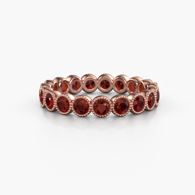 Deze ring heeft de naam Mariam 0.07, dit type ring noemen we een eternity ring, hierbij worden volledig rondom de ring edelstenen gezet. Deze ring uitgevoerd in 14 Carat rosé goud heeft allemaal kleine granaat van 2.7 mm. De schitterende granaat zijn allen identiek qua grootte en worden rondom in de band van de ring geplaatst. Alle granaat worden zeer zorgvuldig geselecteerd, juist omdat ze zo identiek mogelijk moeten zijn om het beste resultaat te creëren op deze ring. Onze goudsmid plaatst alle granaat heel precies met de hand worden geplaatst, en daardoor kan het eternity effect versterkt worden. Dit is de passie die onze goudsmeden drijft: het creëren van de perfecte ring. Dat is het mooie van ons ambacht! Het resultaat is een prachtige trendy rosé gouden ring, waarin de granaat eindeloos door lijken te lopen. Het perfecte symbool voor jouw oneindige liefde voor haar! Hoe bijzonder is dat!Met veel passie gaan onze edelsmeden met jouw ring aan de slag in ons atelier, zodra je deze besteld hebt. Doordat we geen sieraden op voorraad hebben, hoeven we de voorraad niet door te berekenen in de prijs. En dat zie je terug in de prijs! We geven je graag een beste prijsgarantie.Onze talentvolle ontwerpers voegen elke dag nieuwe designs toe aan de website, en werken samen om tot een zo gevarieerd mogelijke collectie te komen met de mooiste sieraden. Wil je een ring laten maken naar eigen ontwerp, neem dan eens contact met ons op voor een offerte. Graag doen wij je een aanbod, waarvan wij denken dat je wat betreft kwaliteit en prijs versteld zult staan.Om het voor jou makkelijker te maken kun je ieder besteld sieraad binnen 30 dagen na aflevering eenvoudig weer retour sturen.