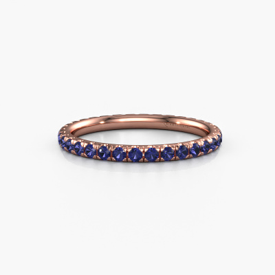 Deze aanschuifring heeft de naam Jackie 1.7, dit type aanschuifring noemen we een eternity ring, hierbij worden volledig rondom de aanschuifring edelstenen gezet. Deze aanschuifring uitgevoerd in 14 Carat rosé goud heeft allemaal kleine saffier, 1.7 mm. Deze rosé gouden eternity aanschuifring is een prachtige, betekenisvolle aanschuifring om je aanzoek wel heel bijzonder te maken. De schitterende saffier zijn allen identiek qua grootte en worden rondom de aanschuifring geplaatst. Alle saffier worden zeer zorgvuldig geselecteerd, juist omdat ze zo identiek mogelijk moeten zijn om het beste resultaat te creëren op deze ring. Het zijn natuurproducten, waardoor er toch minuscule verschillen tussen de stenen kunnen zitten. Maar doordat alle saffier door onze goudsmid met de hand heel nauwkeurig worden geplaatst, kan het eternity effect versterkt worden. Het vraagt veel geduld en een vaardige hand, maar het vervaardigen van de perfecte aanschuifring is de passie dat onze goudsmeden drijft. Het resultaat wordt een prachtige ring, waarin de saffier eindeloos door lijken te lopen. Het symbool voor jouw oneindige liefde voor haar! Prachtig toch?Met veel passie gaan onze edelsmeden met jouw ring aan de slag in ons atelier, zodra je deze besteld hebt. Doordat we geen sieraden op voorraad hebben, hoeven we de voorraad niet door te berekenen in de prijs. En dat zie je terug in de prijs! We geven je graag een beste prijsgarantie.Onze talentvolle ontwerpers voegen elke dag nieuwe designs toe aan de website, en werken samen om tot een zo gevarieerd mogelijke collectie te komen met de mooiste sieraden. Wil je een ring laten maken naar eigen ontwerp, neem dan eens contact met ons op voor een offerte. Graag doen wij je een aanbod, waarvan wij denken dat je wat betreft kwaliteit en prijs versteld zult staan.Om het voor jou makkelijker te maken kun je ieder besteld sieraad binnen 30 dagen na aflevering eenvoudig weer retour sturen.